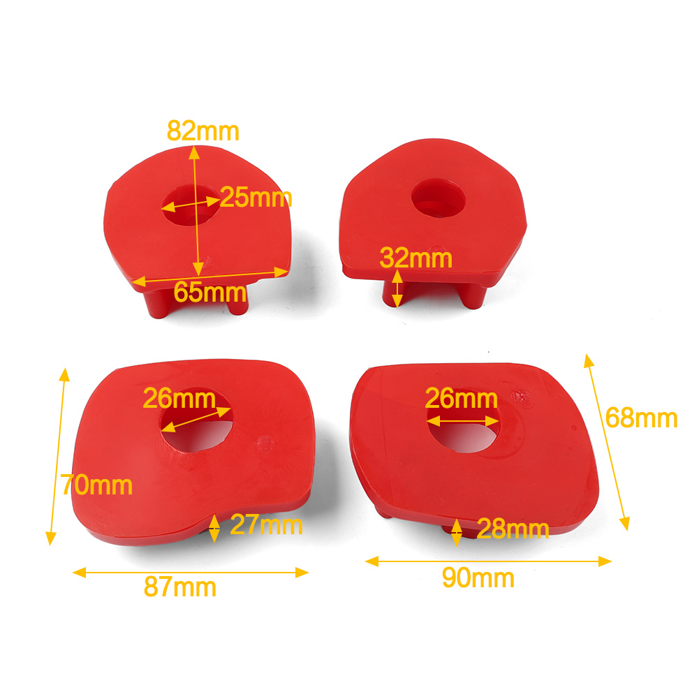 3. Sie reparieren verschlissene Halterungen und reduzieren unerwünschte Bewegungen der Motorbaugruppe. Unter Hochleistungsbedingungen reduzieren sie das Hüpfen der Räder und drehmomentbedingte Bewegungen, die tatsächlich Fahrzeugkomponenten beschädigen können. Diese Einsätze werden gründlich getestet, um dem vorhandenen originalen Motorhalterungssystem Halt und Stabilität zu verleihen.