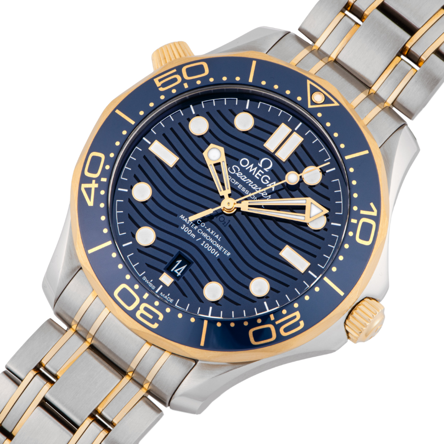| item Description | ☆A high-quality combination model that combines stainless steel and 18K yellow gold. The lustrous blue dial features a wave pattern, evoking the underwater world. Equipped with authentic diver's functions such as a unidirectional rotating bezel and a screw-down crown, this watch also complements elegant outfits. |