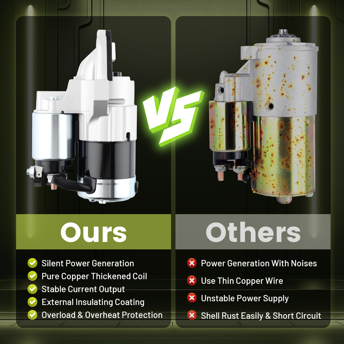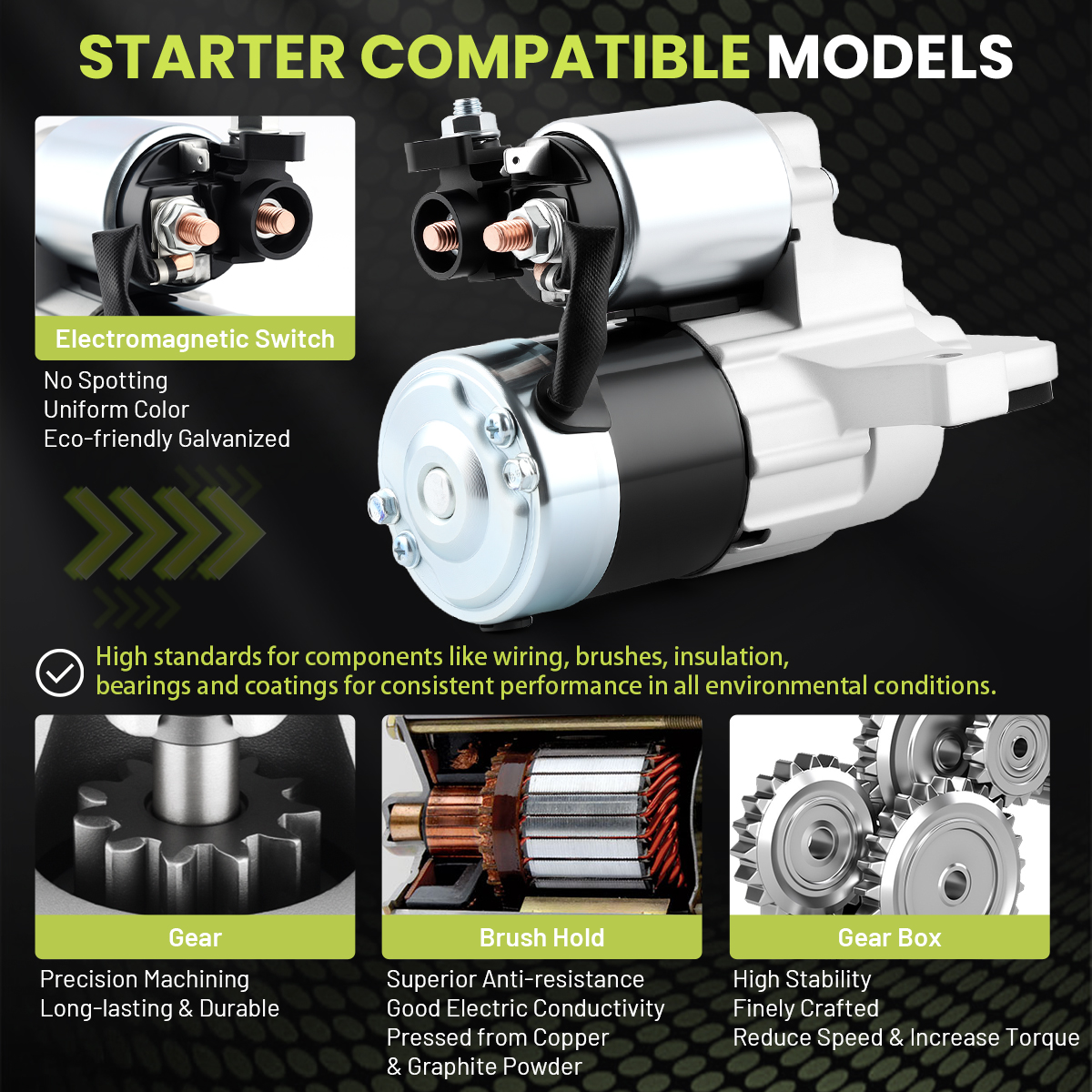 High performance machining of the starter casing for ease of installation and solid joining of the starter housing and your vehicle's mounting surfaces