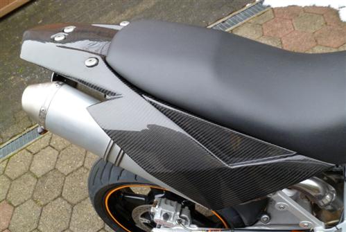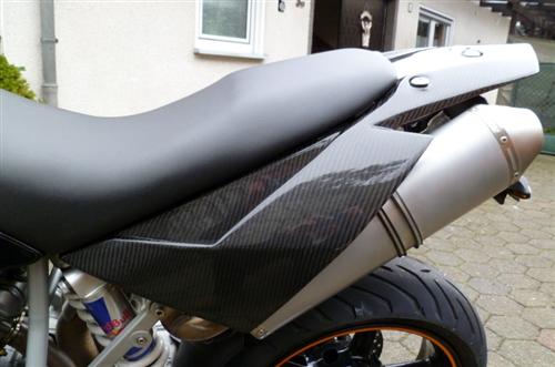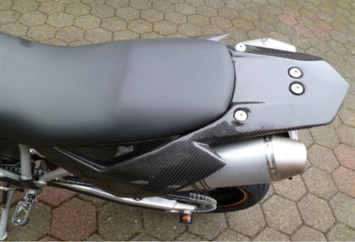 Hier bieten wir Ihnen einen hochwertigen Carbon Heckverkleidung der KTM 950 SM 07-10. Die Verabrbeitung spricht für sich aufwendig lackiert (mit UV Schutz) und Hochglanz Handpoliert.