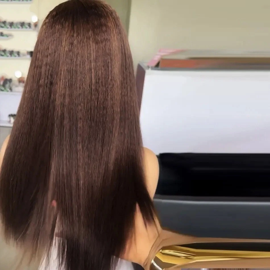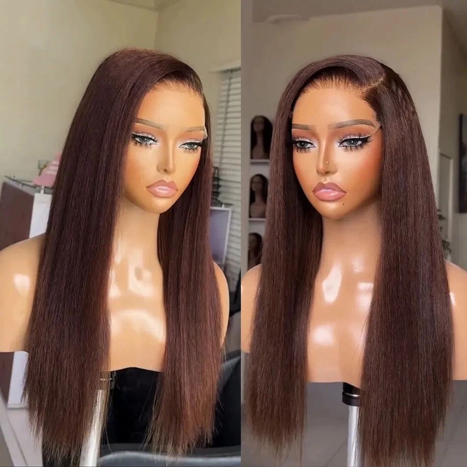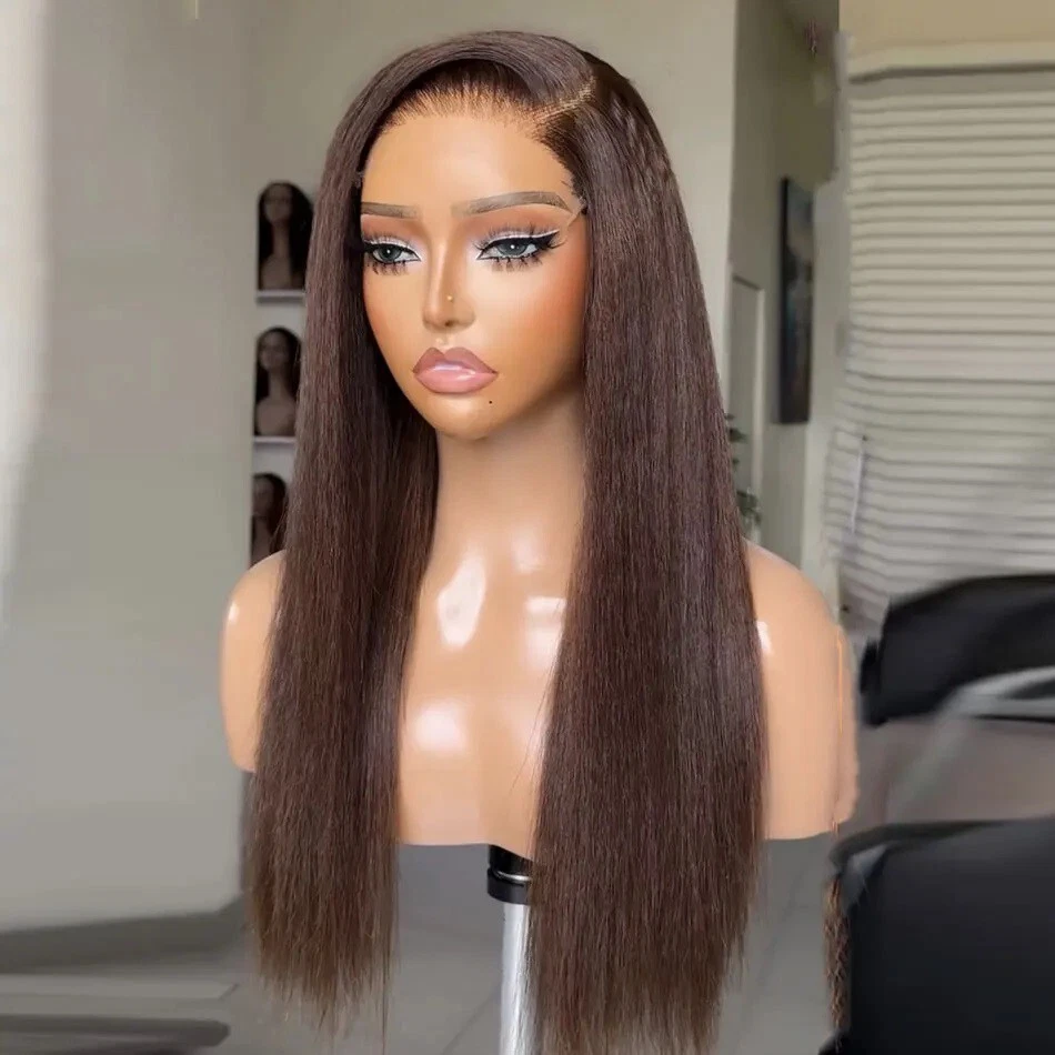Product | Dark Brown Human Hair Yaki Straight Side Part 13x6 Lace Front Wigs For Women |