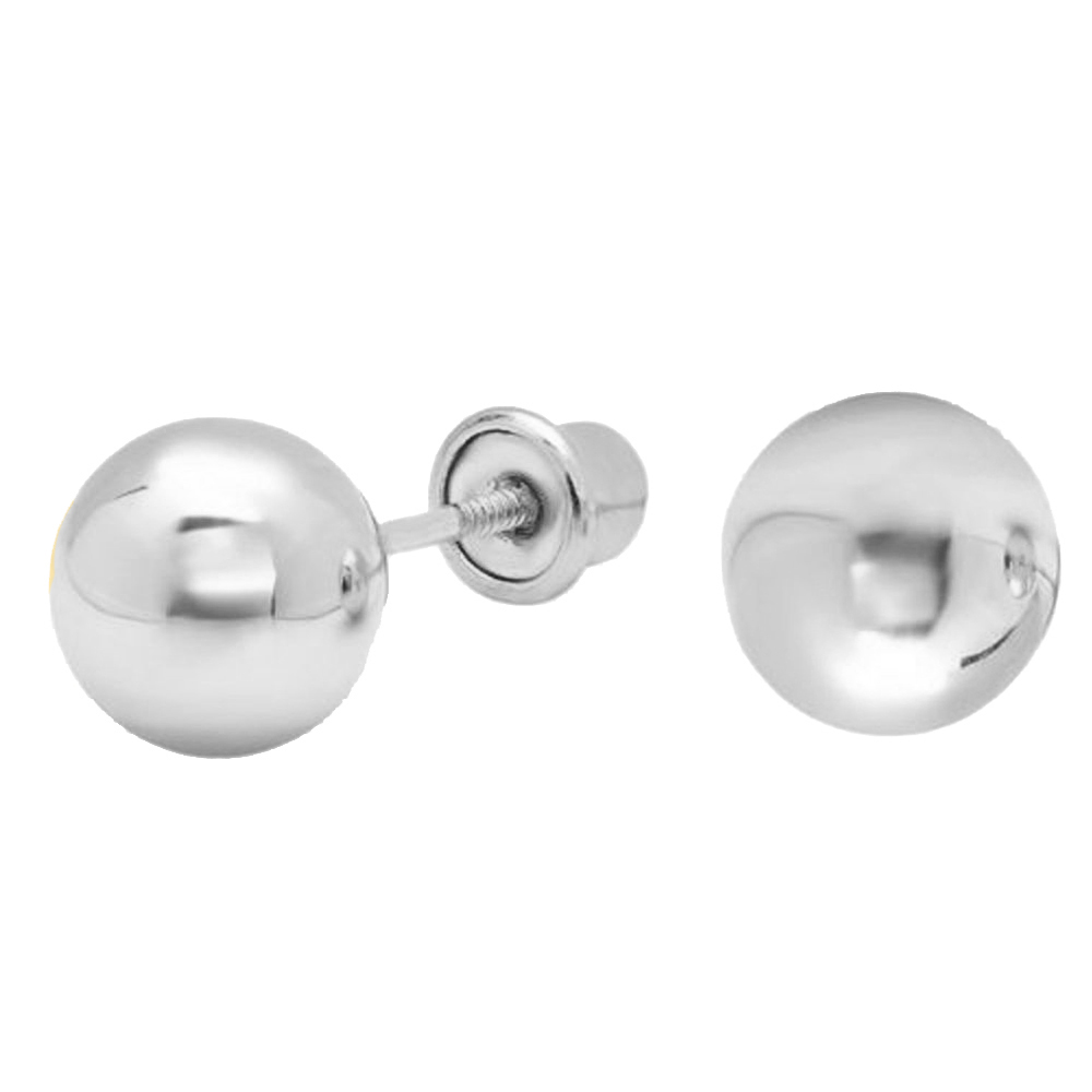 Genuine 14k White Gold 6mm Round Ball Stud Screwback Safety Stud Earrings