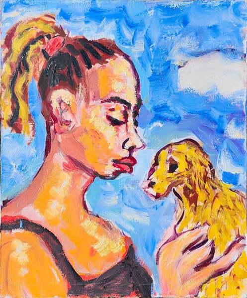 Discover the heartwarming charm of "Girl and Dog," an original Contemporary Art painting by emerging artist Greg Kessler that captures the tender bond between a young girl and her beloved puppy. This vibrant work features a ponytailed girl carrying her pet dog with loving care, rendered in Kessler's distinctive Psychedelic Art style that infuses everyday moments with bold color and expressive energy. The artist's playful approach to figurative painting celebrates the universal connection between humans and animals, making this piece a delightful addition to any collection focuséd on Contemporary Art, animal subjects, or works by emerging artists who bring fresh perspectives to timeless themes of companionship and affection.