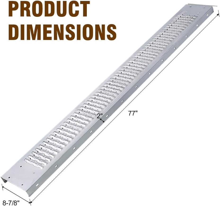 【Lightweight & Portable】--Our trailer ramp is lightweight, with each ramp weighing just 9.5 lbs (4.3 kg), making it easy to move and set up. Its compact size allows for convenient storage in your garage or truck when not in use, providing convenience and ease of use for your loading needs.
