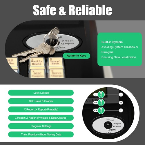 Easy to Operate: Clear Button Markings and Color Divisions, a Large Employee Lcm Screen, and a Clear Eight-digit Customer Led Screen Provide Great Convenience for You and Your Customers. the Employee Display Screen Clearly Shows Cashier, Time, Date, and Other Content, Which Even Novice Sales Personnel Can Quickly Grasp.