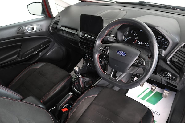 Autostrada Are Delighted To Offer This One Former Keeper Ford EcoSport ST-Line. Finished In Red Metallic With Complimenting Part Leather and Alcantara Upholstery. Specification Includes - Satellite Navigation System Bluetooth Telephone Preparation DAB Digital Radio Android Auto Bang & Olufsen Sound System Heated - Three Spoke Leather Multi Function Steering Wheel On Board Computer Cruise Control Manual Seat Adjustment Heated Front Seats ISOFIX Child Anchorage Points Keyless Go Automatic Headlights Rain Sensing Windscreen Wipers Heated Windscreen Ambient Lighting Automatic Stop/Start Reversing Camera System Sun Roof 18 Inch Alloy Wheels. At Autostrada, we customise finance packages to meet your individual needs. We offer both Hire Purchase (HP) and Personal Contract Purchase (PCP) options, depending on the age of the car, all at the most competitive rates available. For a personalised quote, call us at , and one of our team members will be happy to assist you. If you have a car for part exchange, our team will provide a manual valuation based on current market conditions to ensure you get the best possible deal for your new car. Every car at Autostrada undergoes a full HPI check and our rigorous 125-point Autostrada Approved car inspection. Where required, we also service and MOT the car, and include a standard warranty for your peace of mind. As approved partners of Warranty Wise, we can also offer you a comprehensive extended warranty policy, which is valid nationwide and includes roadside assistance and recovery. Flexible payment options are available, so be sure to ask our team for a quote. For the next generation in car care, Autostrada is an approved stocklist of Autoglym Cerafuse Ceramic Protection.