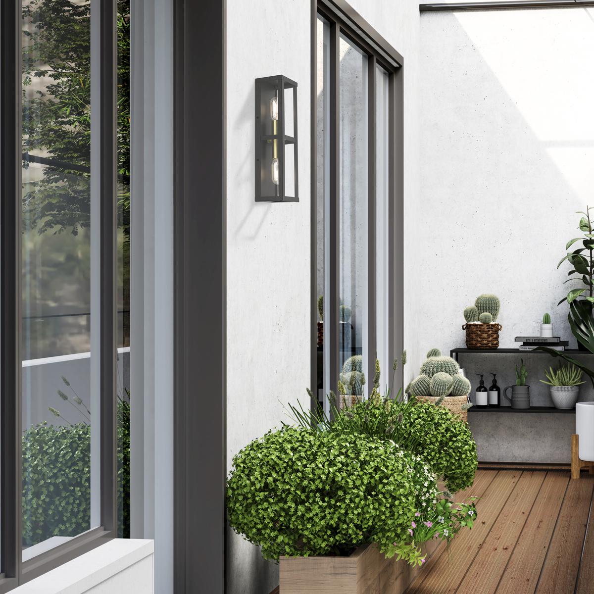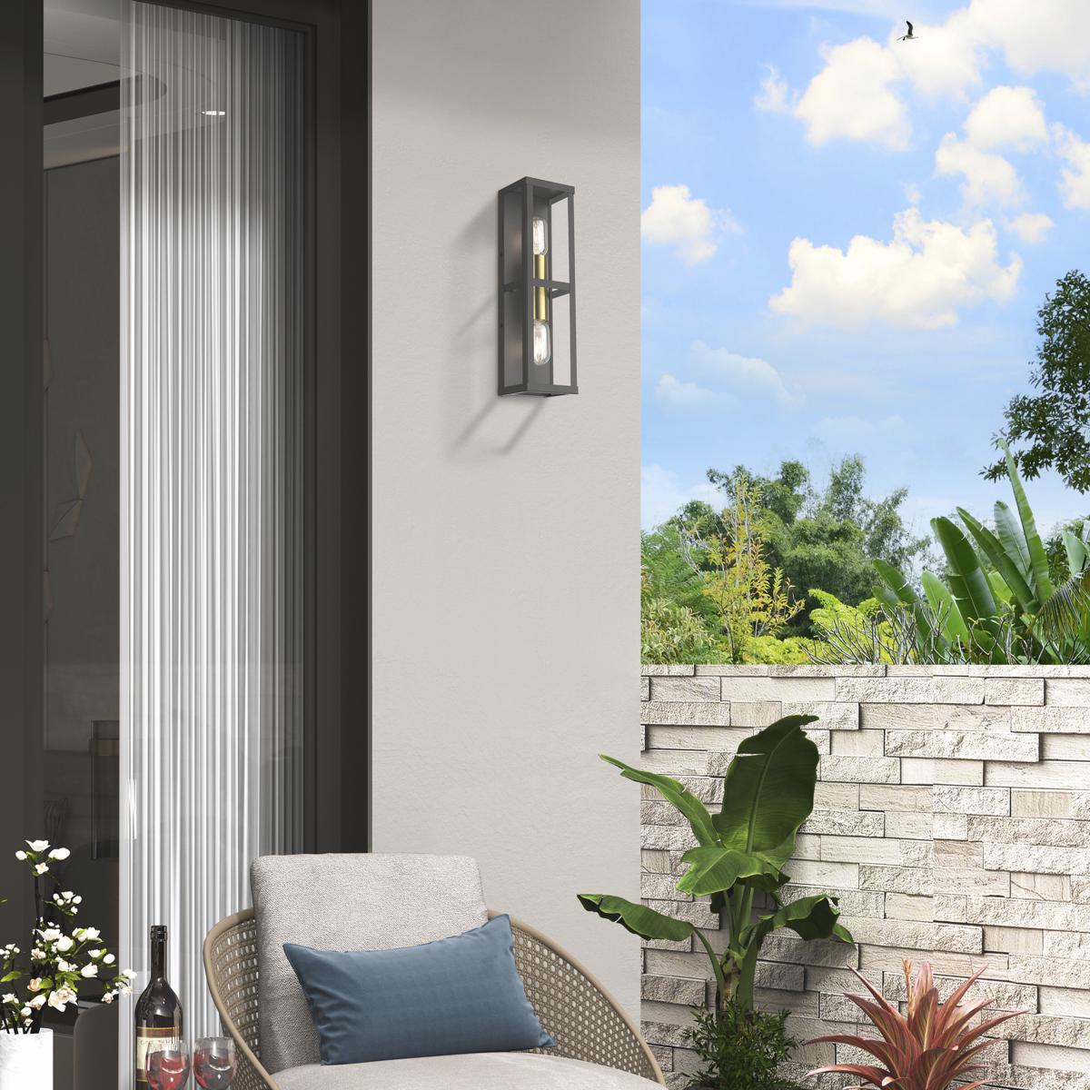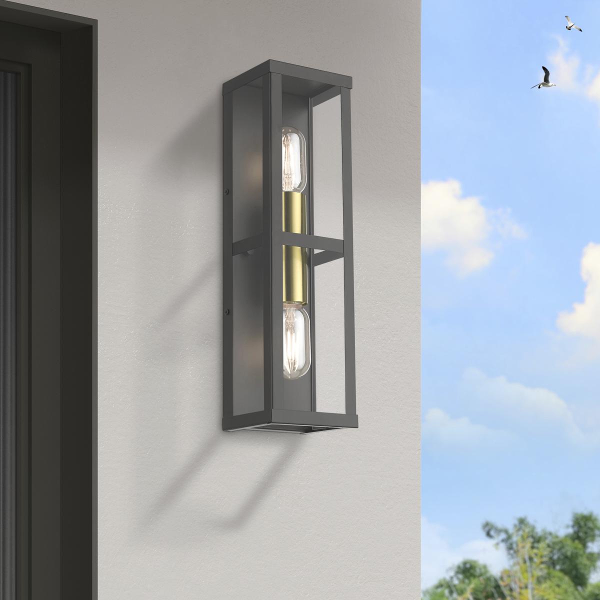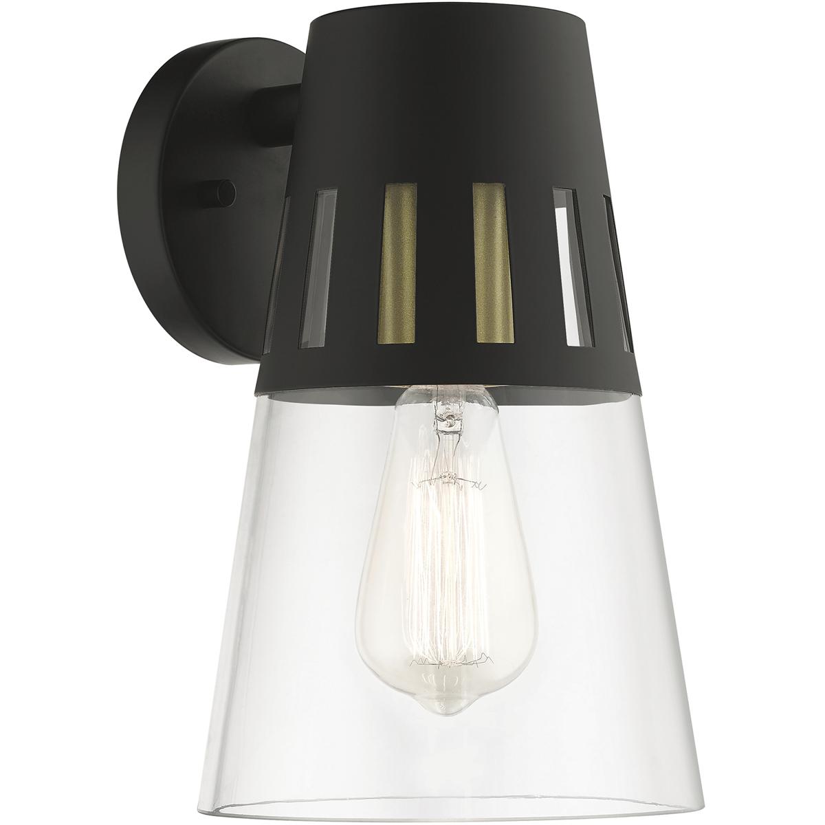 1 Light Bronze Outdoor ADA Wall Lantern with Antique Gold Finish Accents