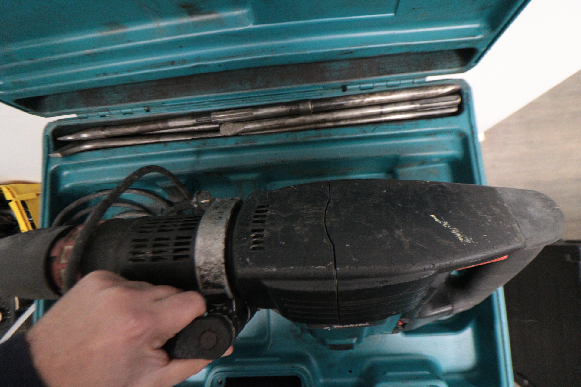 Der Stemmhammer befindet sich in einem gutem Zustand, ohne jegliche Schäden. Stärkere Gebrauchsspuren sind typisch bei Stemmhammern Maschinen.