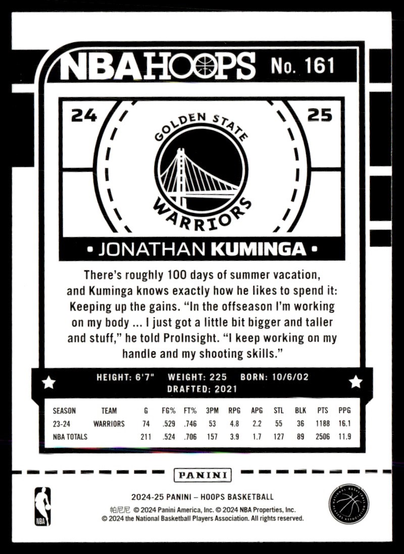 2024-25 Hoops Jonathan Kuminga Golden State Warriors #161