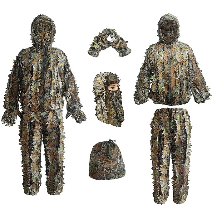 LYLPYHDP Ghillie S (Fit tall 3.9-4.9FT), Fast Dry Woodland Camouflage Leaf