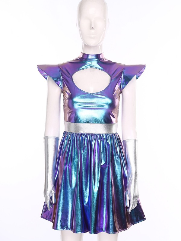 The metallic shiny fabric is trendy and eye-catching, making you the center of attention at any event.