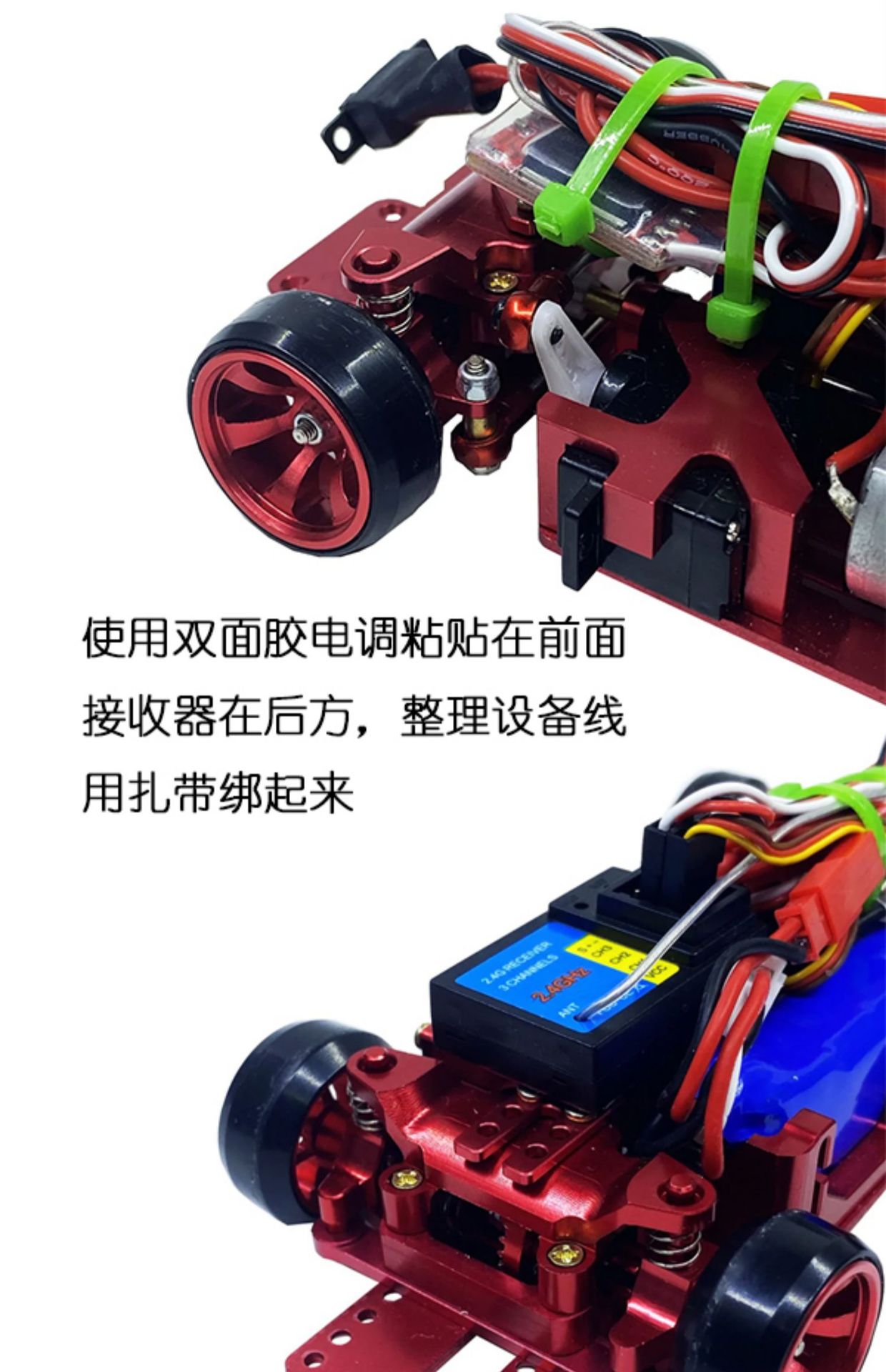 1 set(1*All-metal CNC frame, 1*5g steering gear, 1*remote control, 1*receiver, 1*USB charger, 1*roll of double-sided adhesive tape, 2*straps)