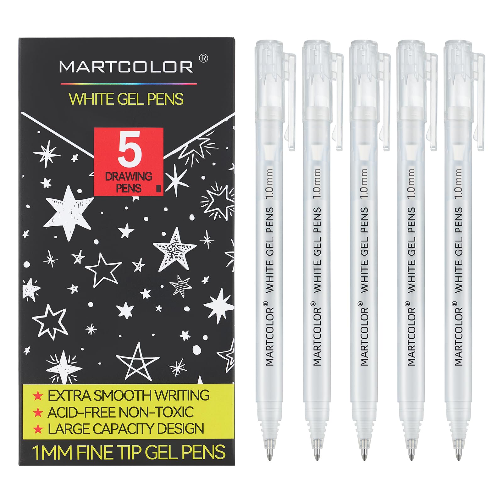 MARTCOLOR White Gel Pens, 5 Pack, 1 mm Extra Fine 1 Count (Pack of 5),