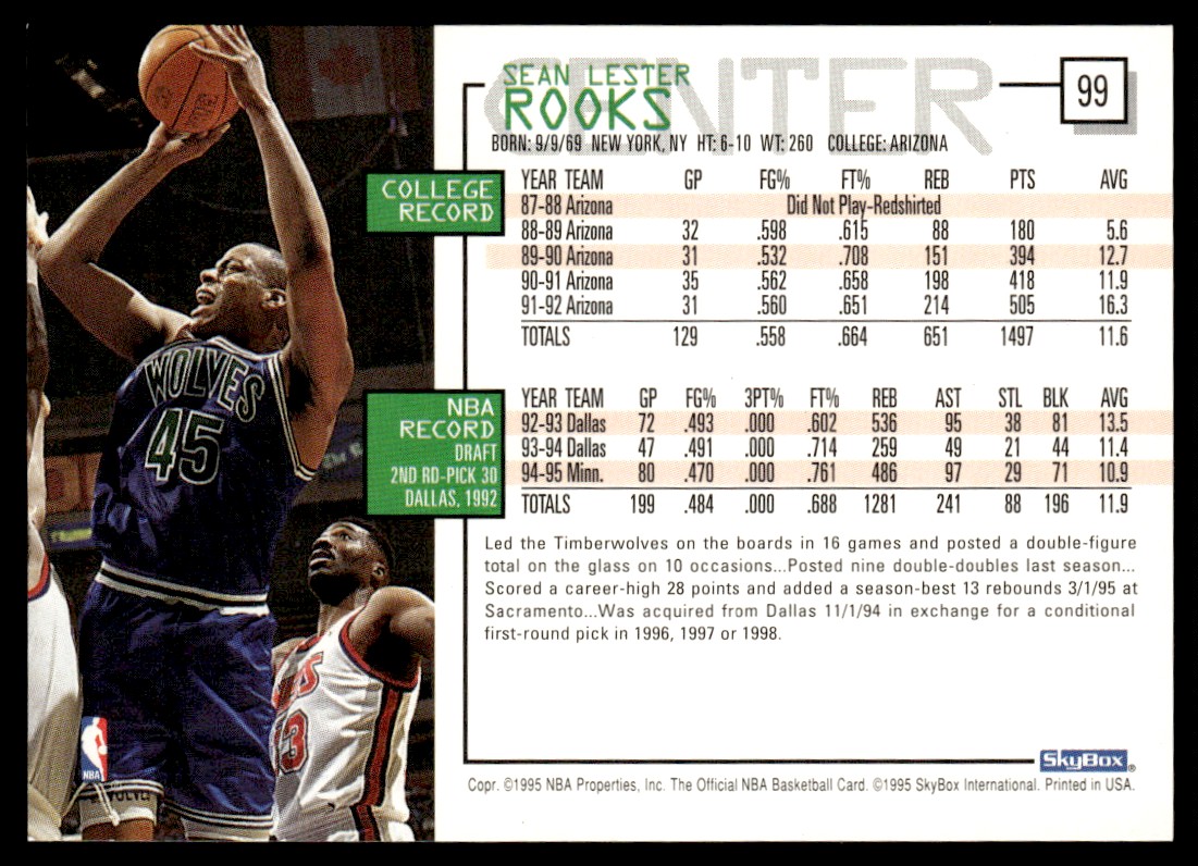 1995-96 Hoops Sean Rooks Minnesota Timberwolves #99