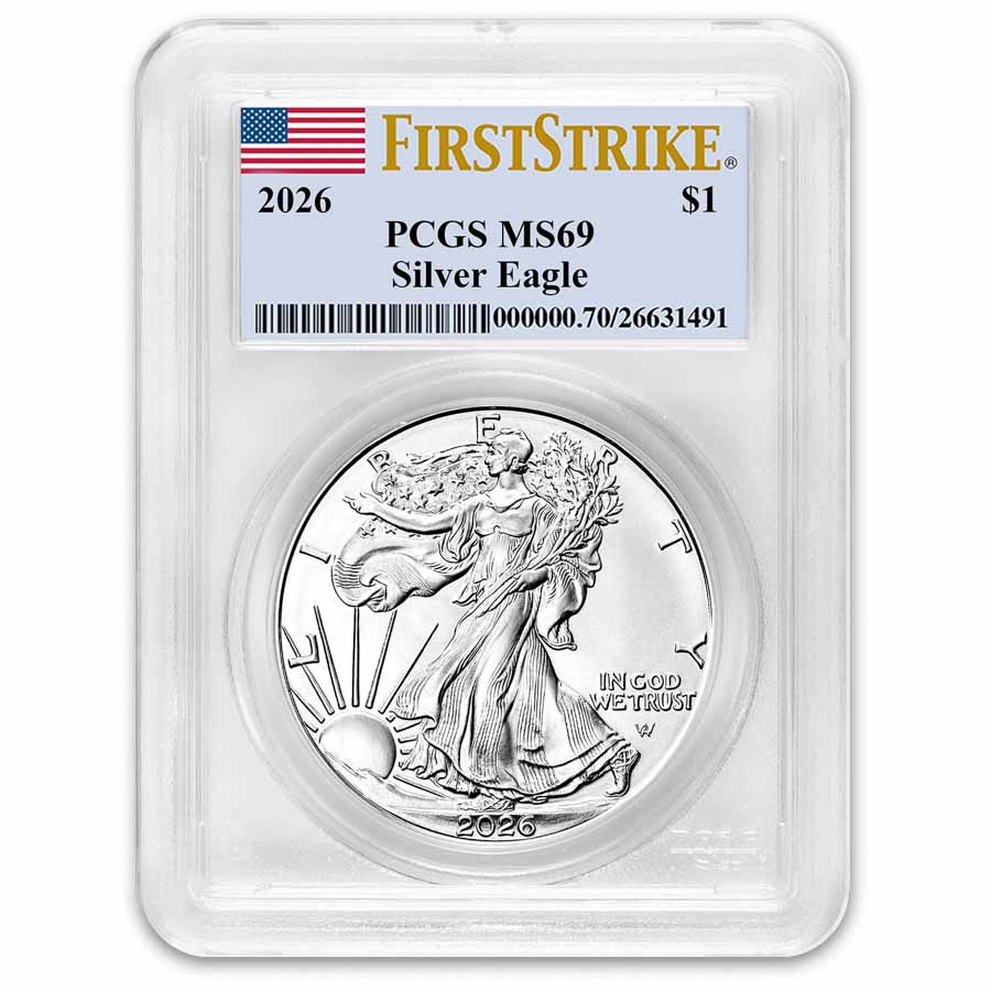 The MS-69 grade from PCGS ensures that this Silver Eagle is nearly flawless, displaying sharp details and bright luster. Its FirstStrike® designation means the coin was issued within the first 30 days of release, giving it added collectible appeal. Together, these features elevate the coin as one of the premier Silver Eagle offerings for 2026.