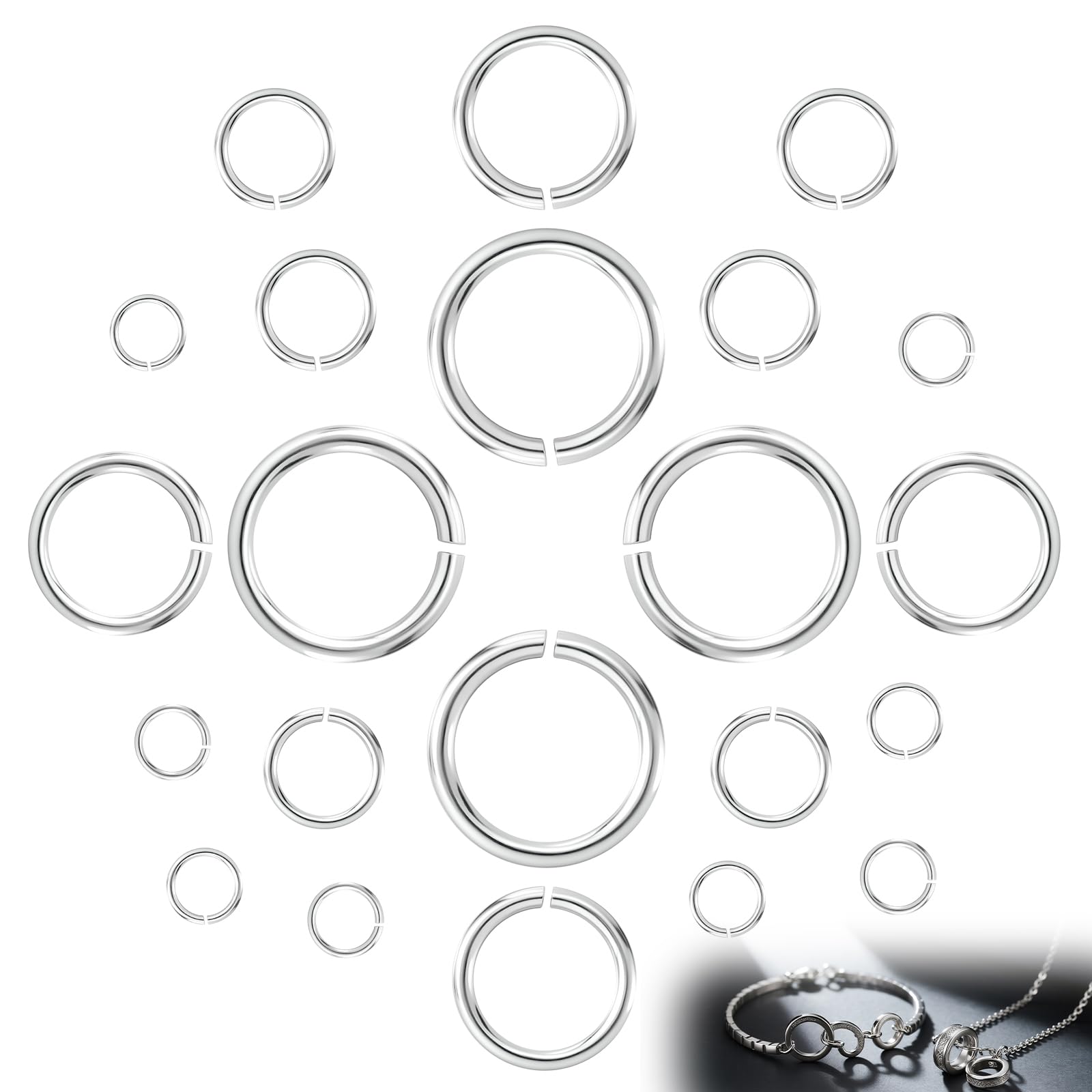 【Convenient 20-Piece Set】The generous package of 20 rings in multiple sizes ensures you have the right ring on hand for any task, making jewelry repair, creation, and customization effortless and efficient.