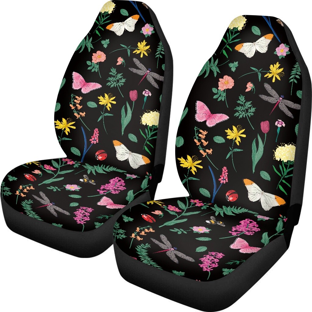 2PC Car Seat Cover Butterfly Flower Front Seat Universal Automatic Protector