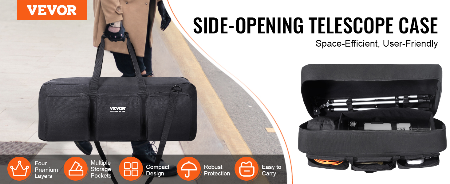 The partitioned design and secure straps offer a stable solution for storing your telescope, tripod, and small accessories. Each space of the telescope case is optimized for organization, allowing you to enjoy observing without worries.