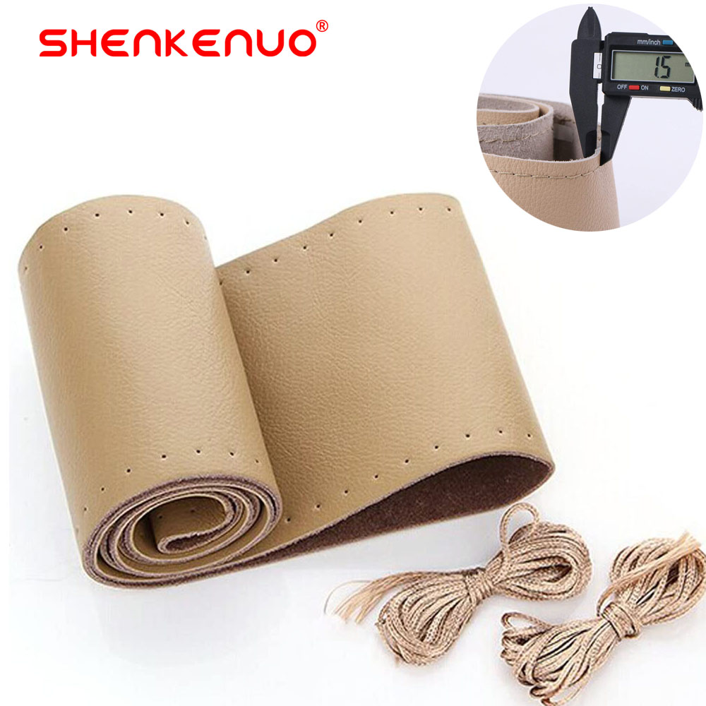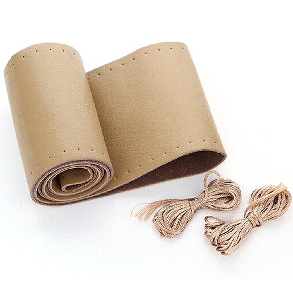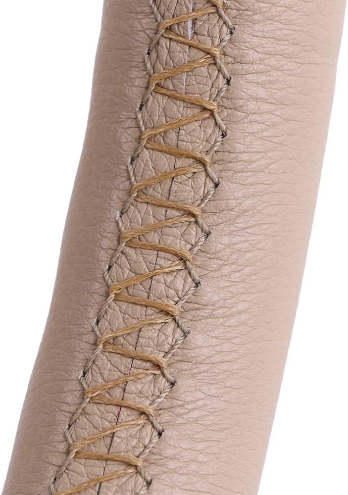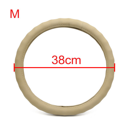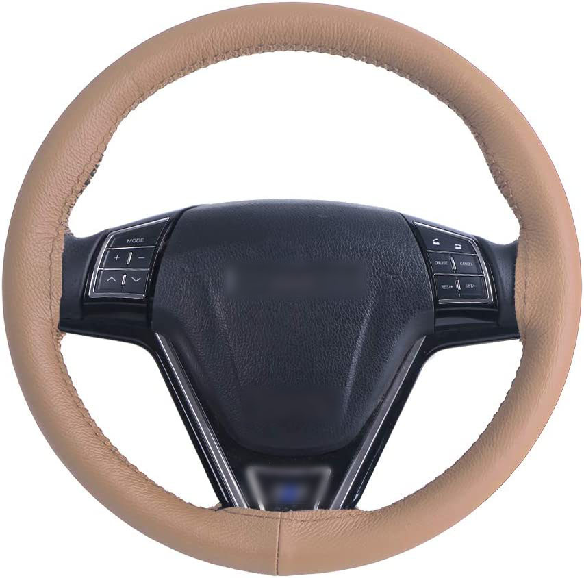 Beige Genuine Leather Steering Wheel Cover Outer Diameter 37-38cm(14.5"-15")