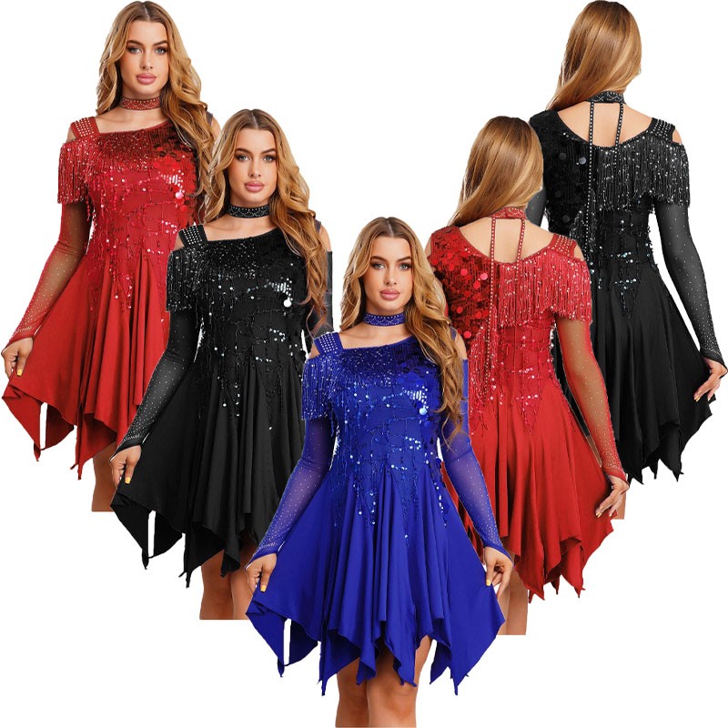 Made from a blend of polyester and spandex, the dress offers flexibility and comfort, allowing for easy movement during the party.