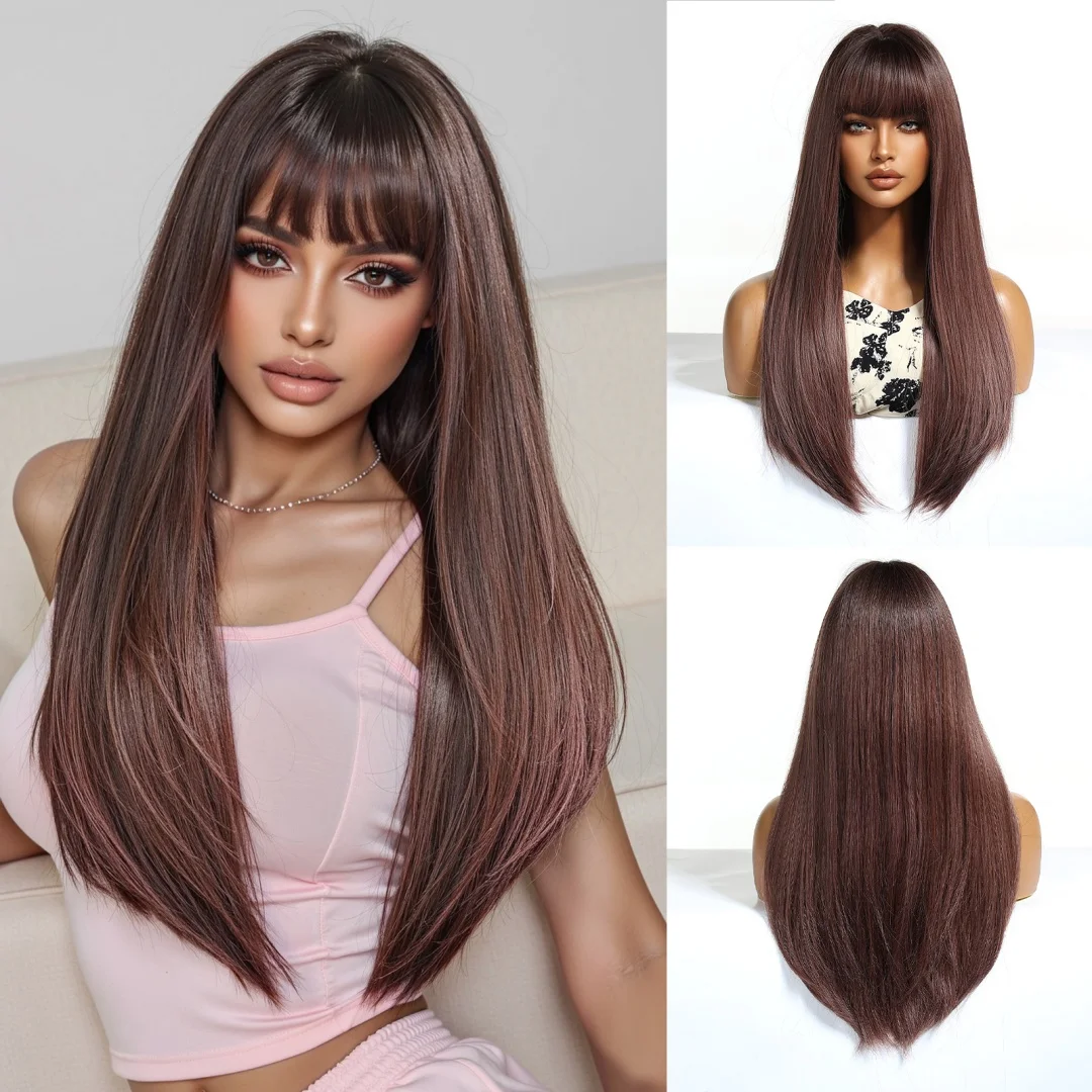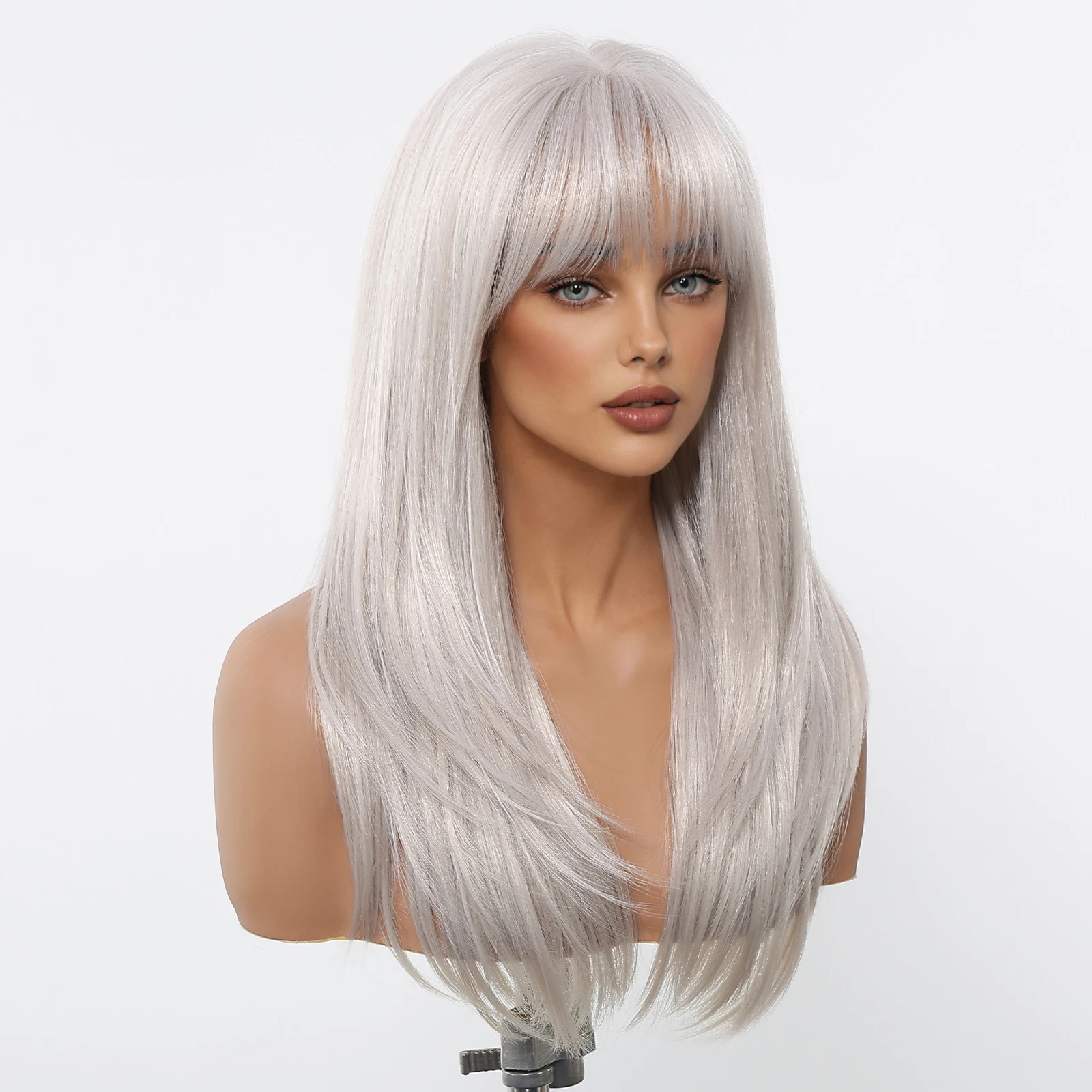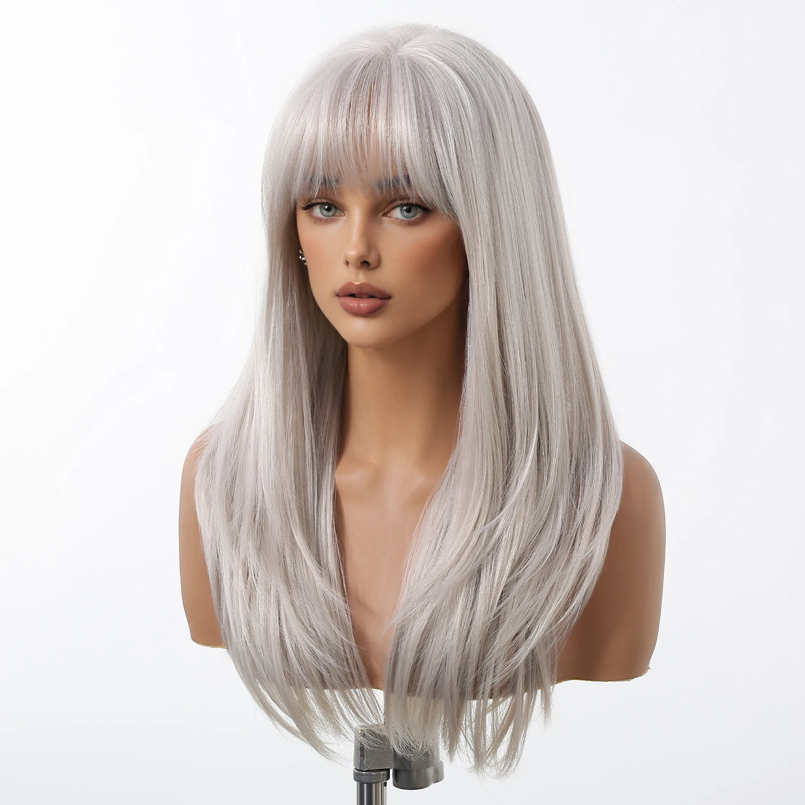 Long Straight Colorful Synthetic Hair Wig with Bang Grey Party Wig for Women Lolita Cosplay Fake Hair Heat Resistant Fiber