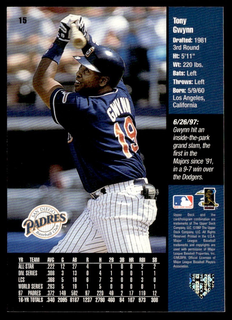 1998 Upper Deck Tony Gwynn San Diego Padres #15
