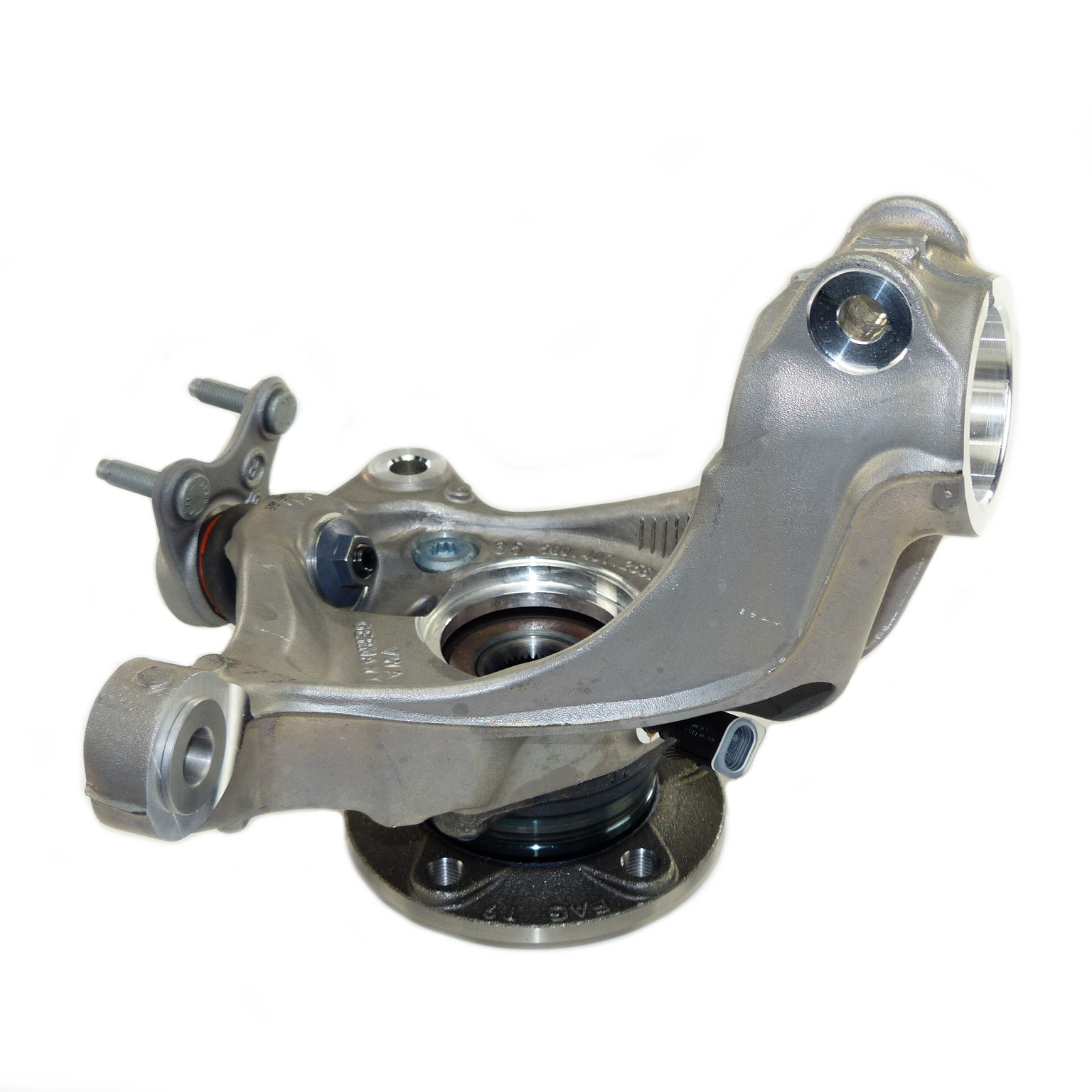 Original VW Achsschenkel vorn rechts, neu, passend für: VW Golf 7, Passat 3G B8, Golf Sportsvan, Touran 5T, Audi A3 8V, Seat Leon 5F, Skoda Octavia 5E, Superb 3V, Lieferumfang: mit Radlager, Teilenummer: 5Q0407254A, 5Q0407258C, 5Q0407254C