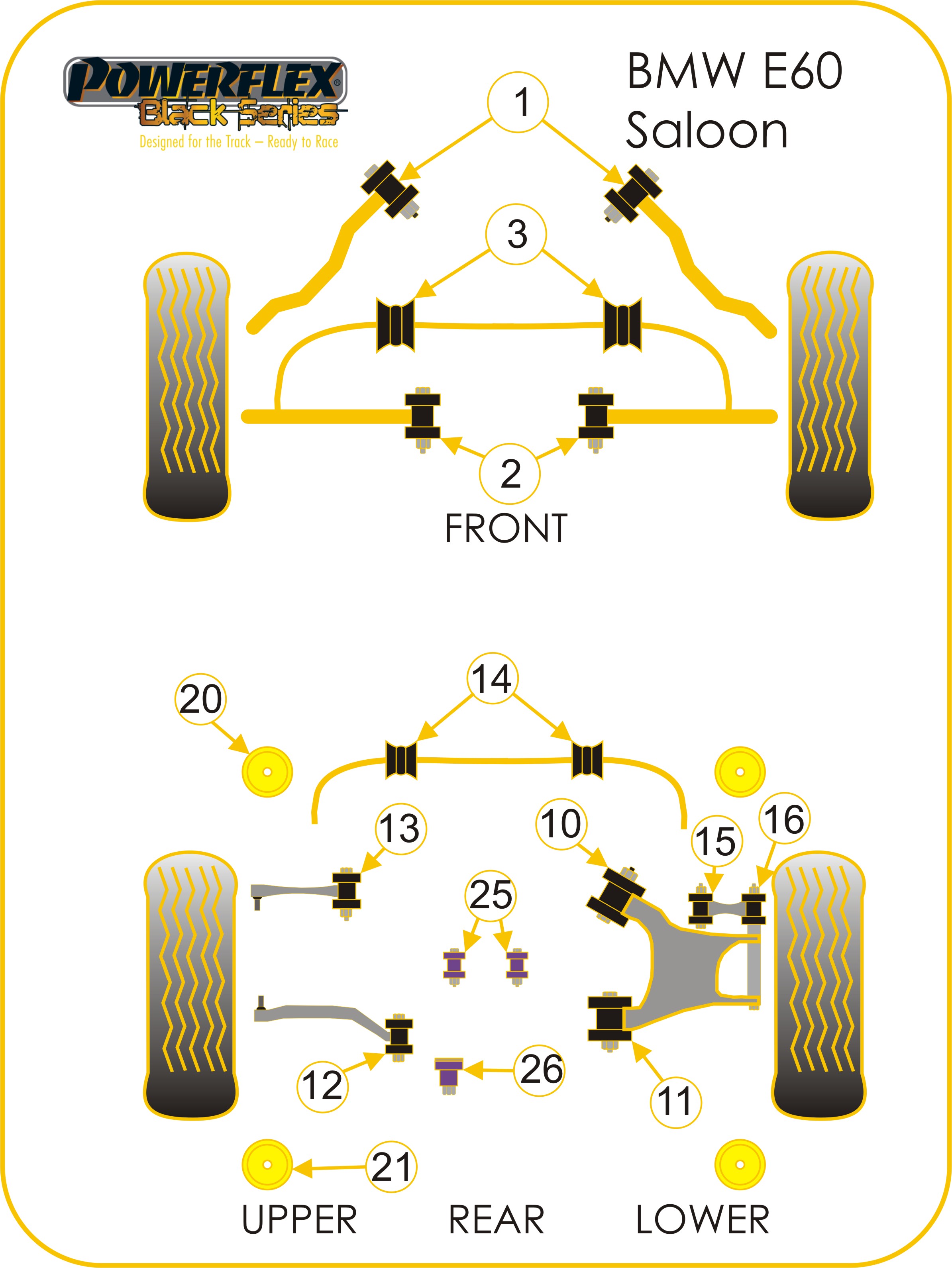 Powerflex-Buchse Black Series für BMW E60 5 Series,Limousine (2003-2010) Stabilisator vorne innen an Fahrgestell 24.6mm