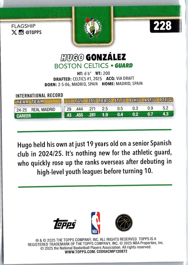 | 2025-26 Topps Hugo Gonzalez RC #228 |