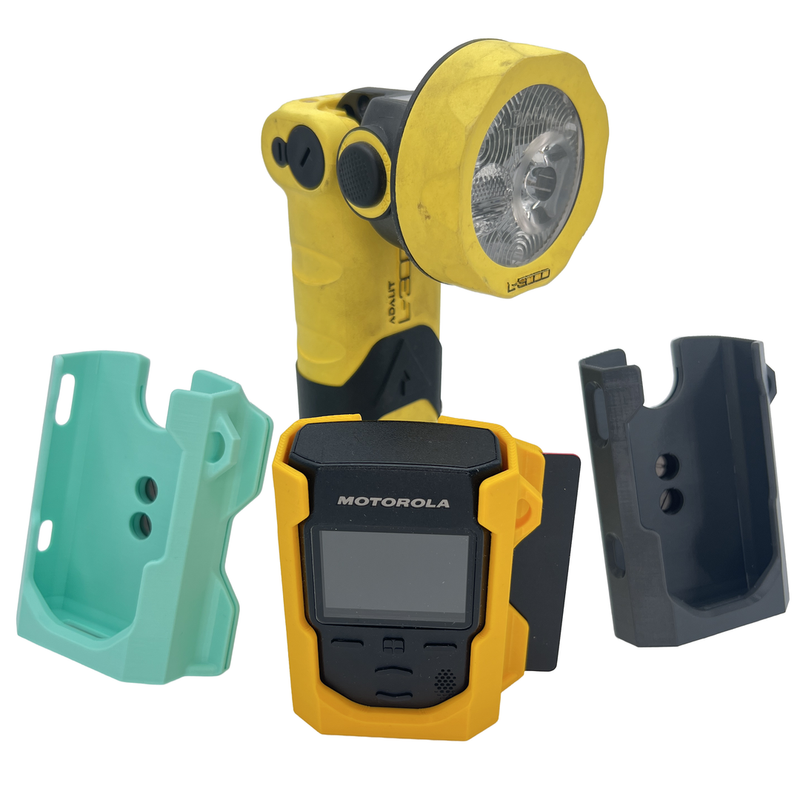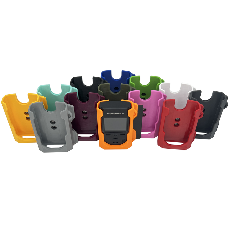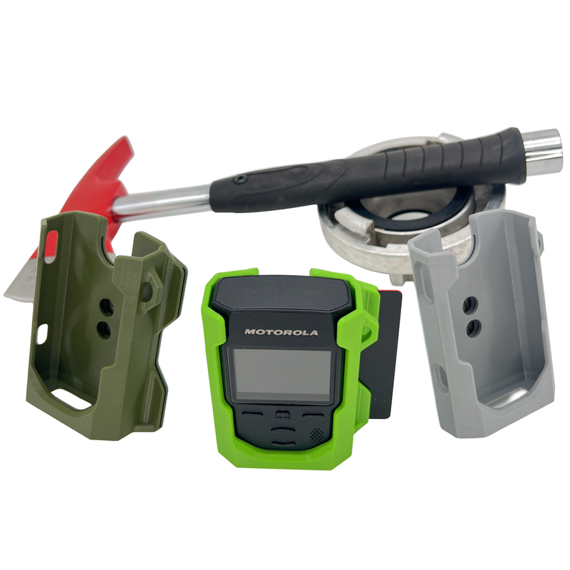 Dieser maßgefertigte Funkmelderhalter für den digitalen Motorola Advisor TPG2200 wurde speziell für die hohen Anforderungen im Einsatz und den Arbeitsalltag entwickelt.
