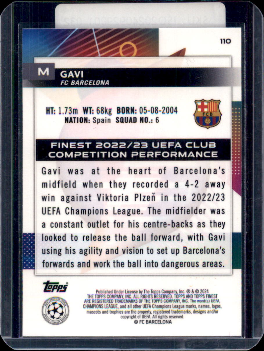2024 Topps Finest UEFA Club Competitions Gavi /275 sky blue #110