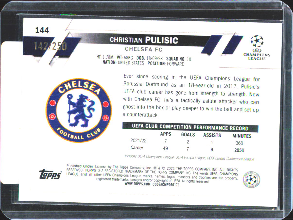 2023 Topps Chrome Christian Pulisic /250 Pink X-Fractor #144