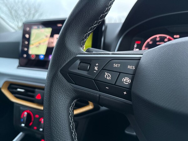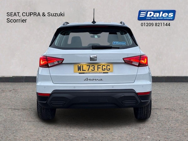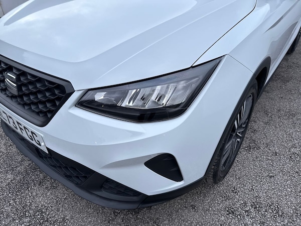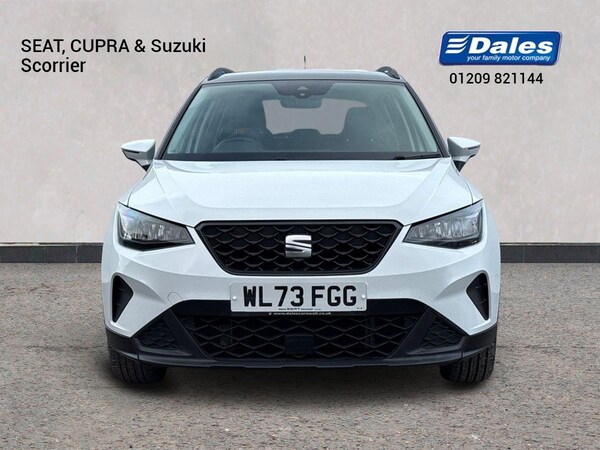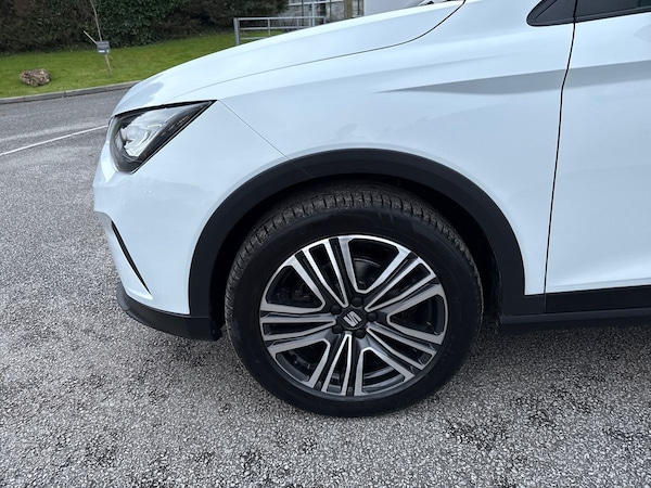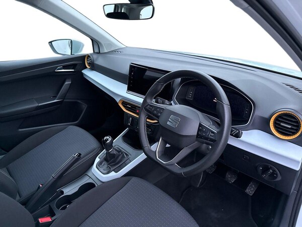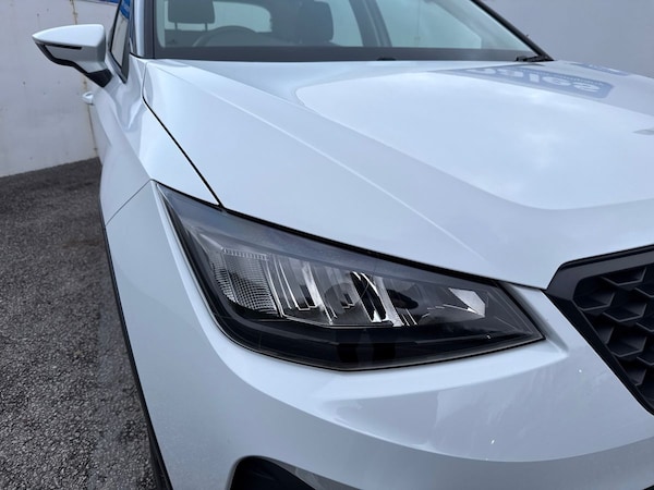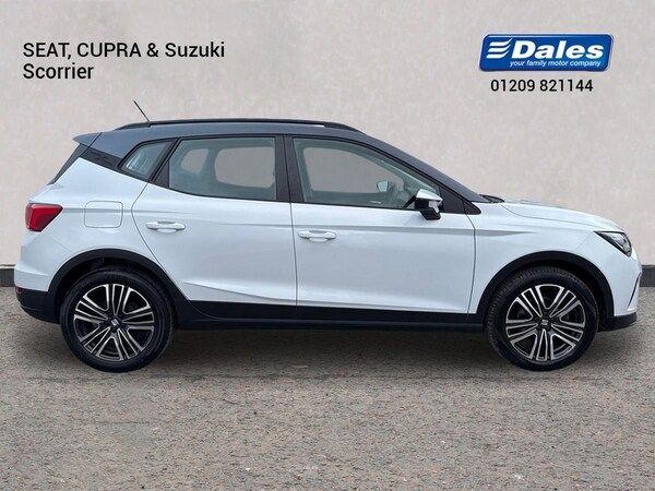The SEAT Arona 1.0 TSI SE Technology 5-door Hatchback in Nevada white with a grey roof has a sleek and modern design, perfect for city driving and weekend getaways. With a spacious interior featuring comfortable cloth upholstery and a range of convenient features including air conditioning, cruise control, and a 9.2"" colour touchscreen with navigation system, this car offers both style and practicality.Safety is a top priority with features like multiple airbags, lane keeping system, emergency brake assist, and tiredness recognition system. The ECO LED automatic headlights and LED daytime running lights ensure optimal visibility, while the rain sensing wipers and rear fog lights help you navigate challenging weather conditions.The SEAT Arona also boasts impressive technology including full link smartphone integration, wireless phone charger, and a digital cockpit. With a powerful 1.0 TSI engine and smooth electric speed-sensitive power steering, this car delivers a dynamic and enjoyable driving experience.Whether you're commuting to work or heading out on a road trip, the SEAT Arona combines comfort, safety, and style in one versatile package.