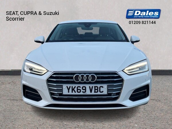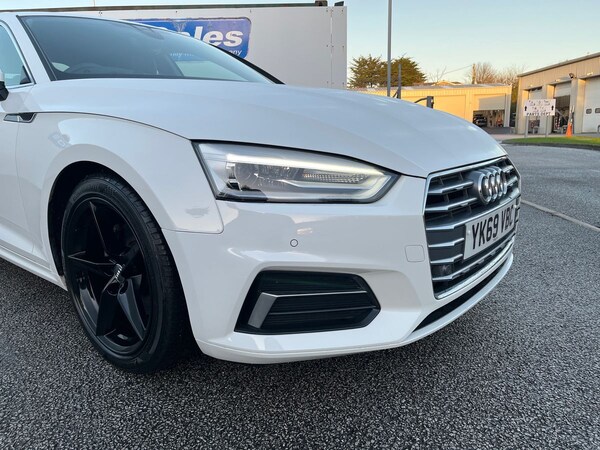 The 2019 Audi A5 Sport 40TFSI S-A in a sleek white exterior with a mileage of 13574 miles is a luxurious and stylish vehicle. This car comes equipped with advanced features such as Audi Connect, Audi Drive Select, and Audi Parking System Plus with front and rear sensors. The interior boasts a deluxe 3-zone electronic climate control system, a 7"" colour driver information system, and a 3-spoke multi-function leather steering wheel for a comfortable driving experience. Safety features include 6 airbags, ISOFIX child seat mounting, and Pre Sense City technology. The Audi A5 Sport also offers modern conveniences like MMI Navigation, Bluetooth interface, and Apple CarPlay compatibility. With its elegant design and cutting-edge technology, this Audi A5 Sport provides a premium driving experience for those who appreciate luxury and performance.