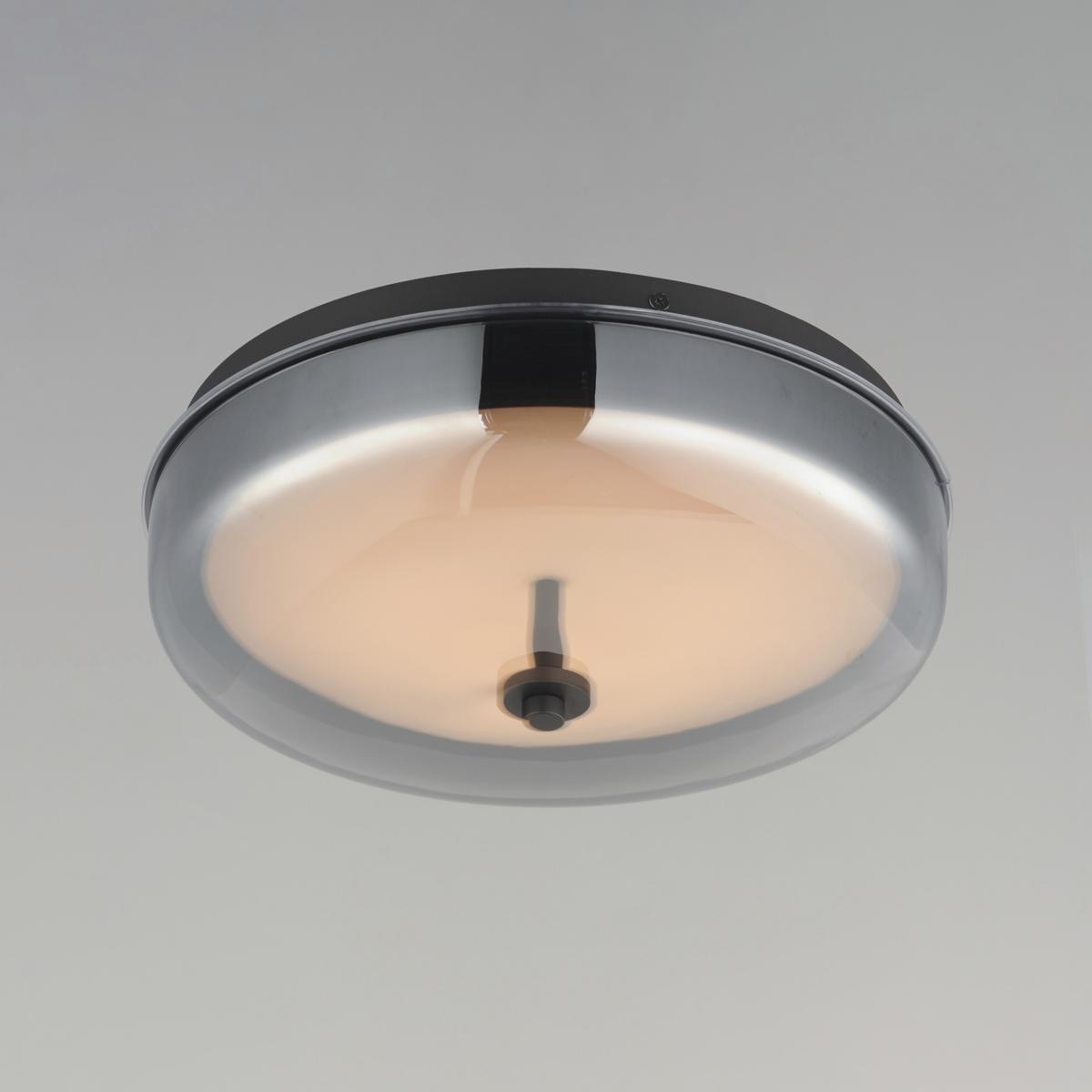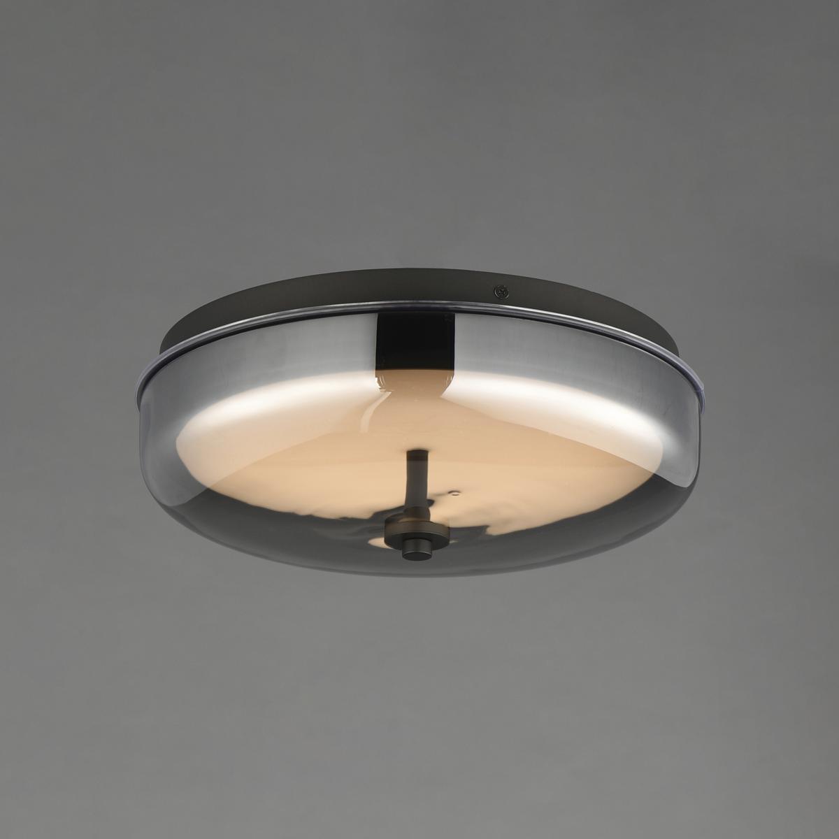 Shallow glass domes encase edge-lit LED panels, creating a captivating play of light that highlights the void within each fixture while delivering evenly distributed illumination both upwards and downwards where applicable. A meticulously crafted frame conceals the hardware, resulting in a sleek, modern LED composition. The collection is available in two sophisticated finishes - Clear Glass with a Gold-plated frame and Mirror Smoked Glass with a Gunmetal frame - and includes a 2-light LED pendant, a versatile flush mount that doubles as a wall-mountable fixture, and a portable lamp option.