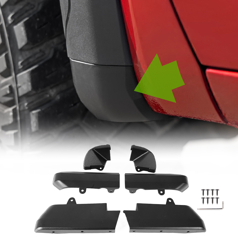 Complete Front and Rear Coverage: Includes both front and rear mud flap deletes for full protection.