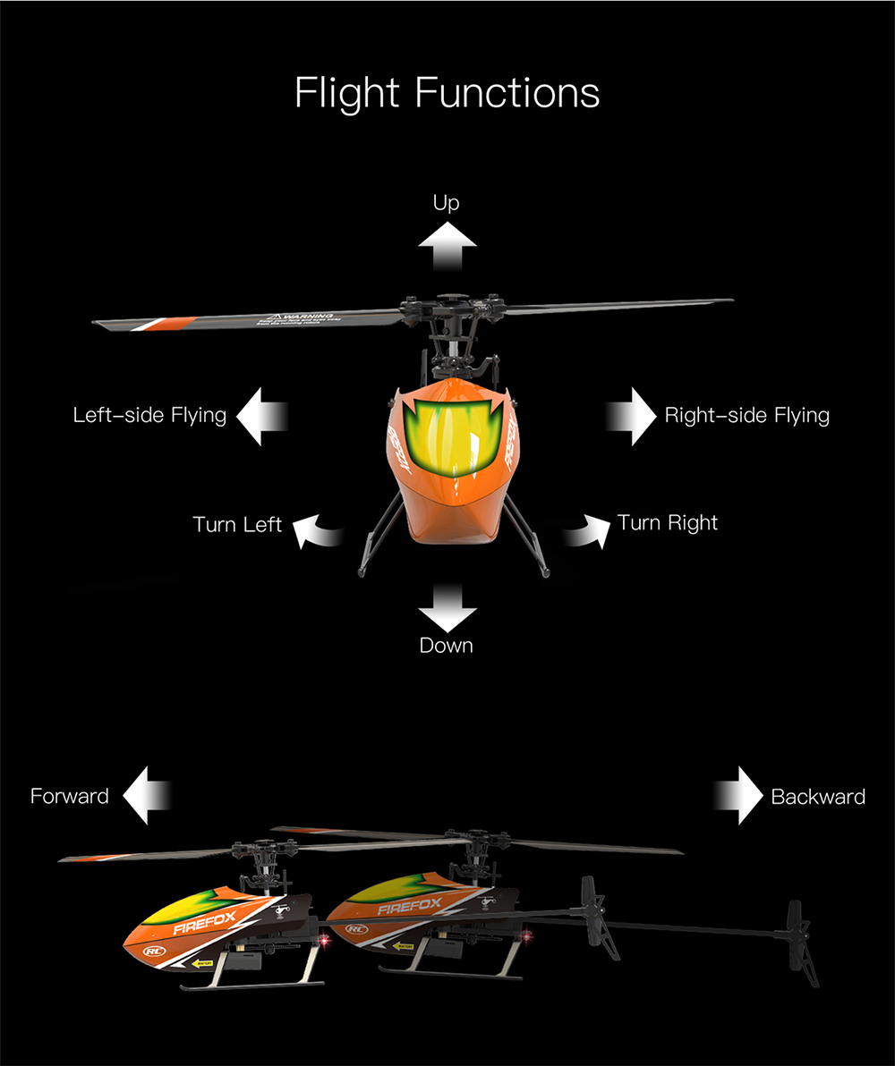 7. Low voltage alarm, locked rotor protection, loss of control protection, large and small rudder conversion, one key takeoff, one key landing and other functions.