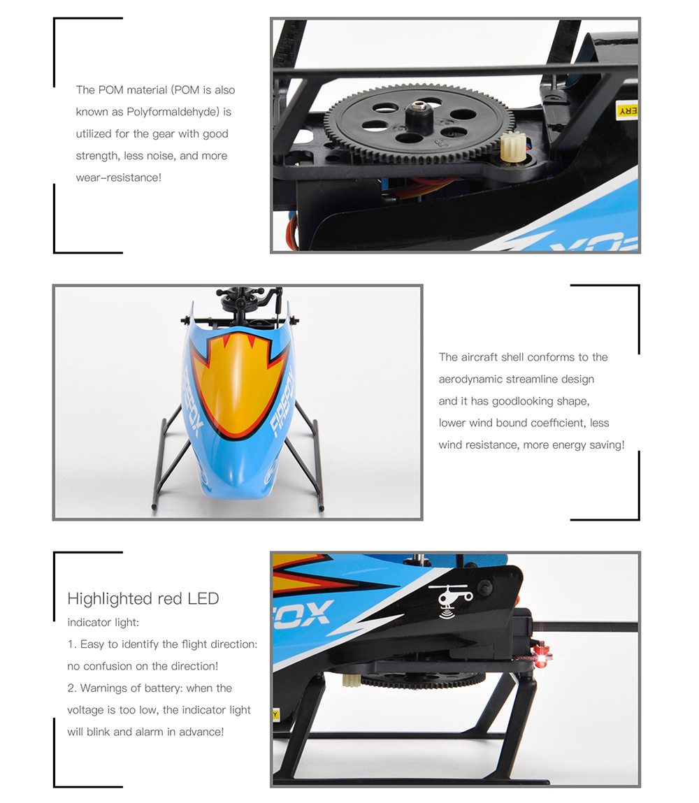 Adopting a single blade design without ailerons, a 6-axis electronic gyroscope for stability enhancement, and incorporating a pressure gauge for altitude control, the flight is more stable and easier to control! Ultra long battery life! Impact resistant! The battery life can reach more than 15 minutes!