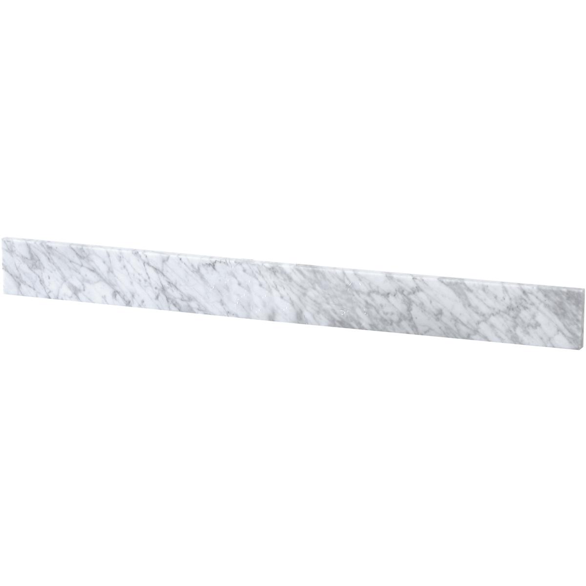 42 inch backsplash in carrara white designed to protect your bathroom walls from splashes and stains.