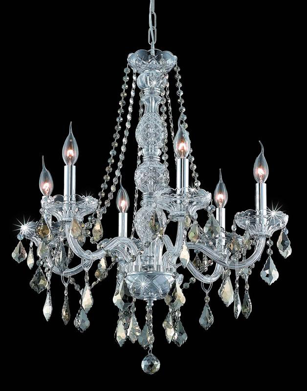 7856 Verona Collection Hanging Fixture D24in H28in Lt:6 Chrome Finish (Royal Cut Golden Teak Crystals)