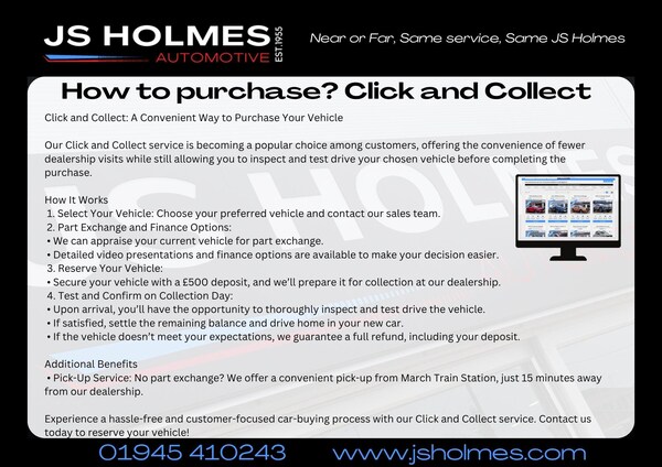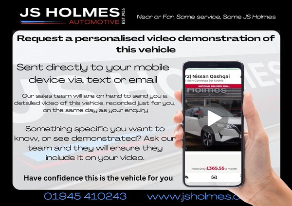 This 2024 Nissan ARIYA Advance presents an exceptional opportunity with its remarkably low mileage of just 1719 miles, having had only one owner since new. This electric ARIYA boasts a 66 kWh battery offering a maximum range of 250 miles, with a full home charge taking approximately 11 hours and 6 minutes on a 7kW charger. For quicker top ups, it can reach 80% charge in as little as 34 minutes at a public charging station.The ARIYA Advance is equipped with a suite of helpful features designed for convenience and safety. These include front and rear parking sensors with parking assistance, blind spot intervention for added awareness, and automatic dual zone climate control to ensure passenger comfort. The Comfort Pack adds heated seats and a heated steering wheel, perfect for colder days. Connectivity is seamless with wireless Apple CarPlay and cabled Android Auto. FREE Delivery Within 100 Miles Full Distance Selling Available Click & CollectWhy Buy from J.S. Holmes?Nissan Global award winners 24 Flexible Purchase & Delivery OptionsChoose from in-dealer service, Click & Collect, or convenient home deliveryPersonalized video walkarounds sent directly to your phone???? Finance Made SimpleCompetitive 9.9% APR Representative finance availableComplete your purchase from home with remote document signing Comprehensive Warranty & Preparation6-month warranty, with optional 12 or 24-month upgradesIncludes a 12-month MOT, full service, professional valet, & sanitization?? Part Exchange WelcomeWe accept all makes and models—contact us for a valuation???? Trusted Family Business Since 1955Established Nissan main dealer since 1975Transparent pricing—no hidden admin, prep, or documentation feesGet in Touch Today!Our friendly and knowledgeable team is here to answer your questions, explore finance options, arrange test drives, help with delivery and collection