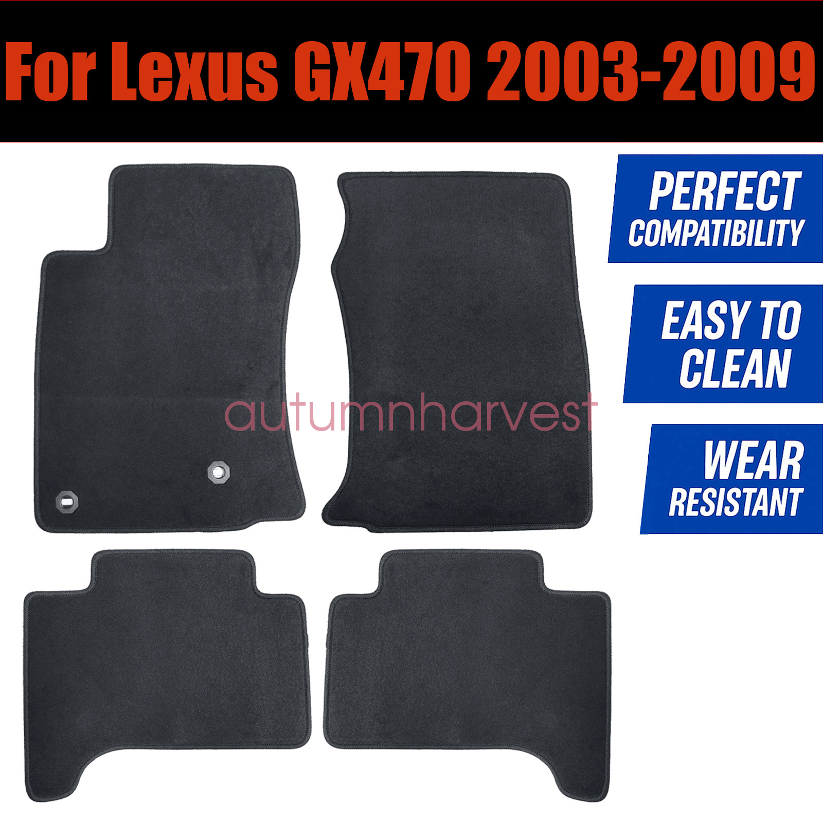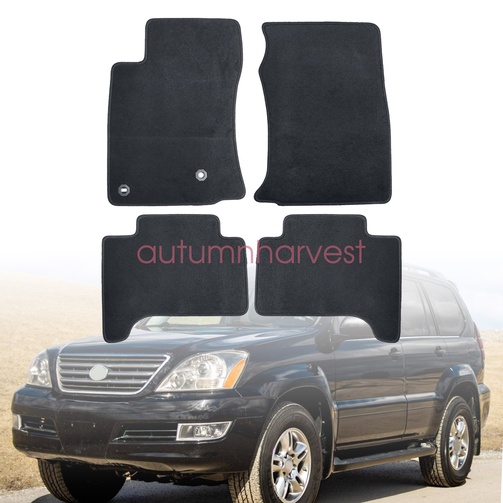 Replacement Black Velour Front & Rear Floor Mats Carpet Fits 2003 2004 2005 2006 2007 2008 2009 Lexus GX470