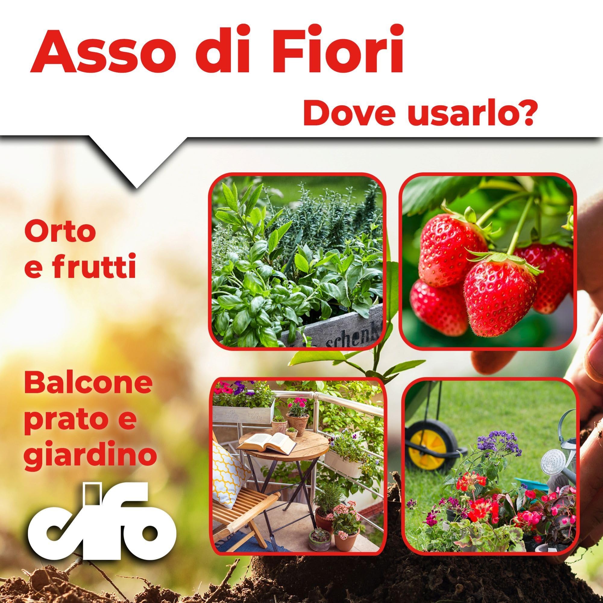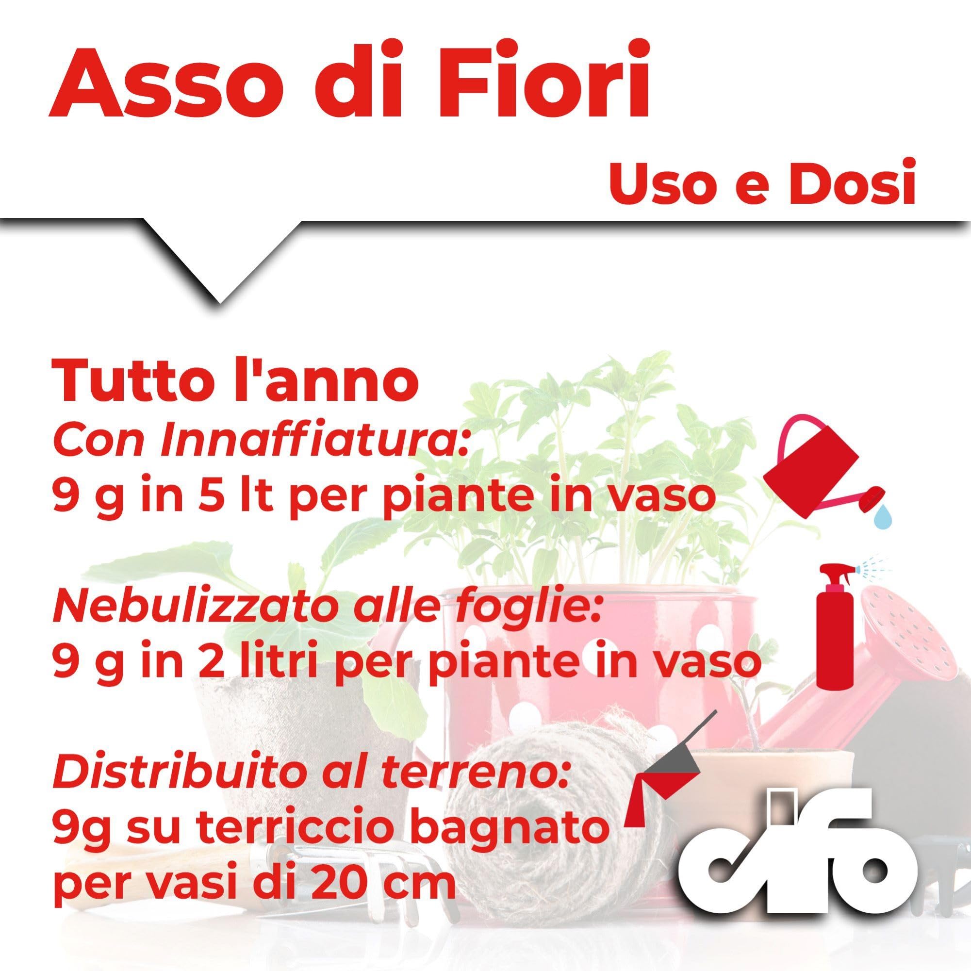 CONCIME IN POLVERE PER TUTTE LE PIANTE: Cifo Asso di Fiori è un concime concentrato in polvere ideale per alimentare tutte le piante del balcone, giardino e orto, fornendo un apporto nutrizionale completo che favorisce la crescita sana e vigorosa delle piante, con particolare attenzione al loro sviluppo ottimale