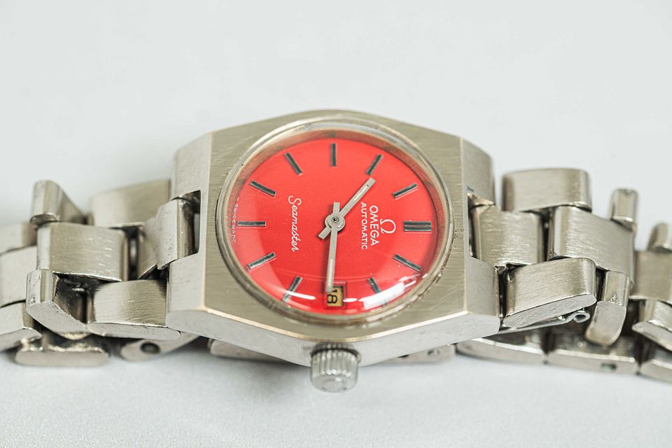 **Working! Needs Service** Vintage OMEGA Seamaster Cal.684 Auto Red 23mm Women's Watch From Japan