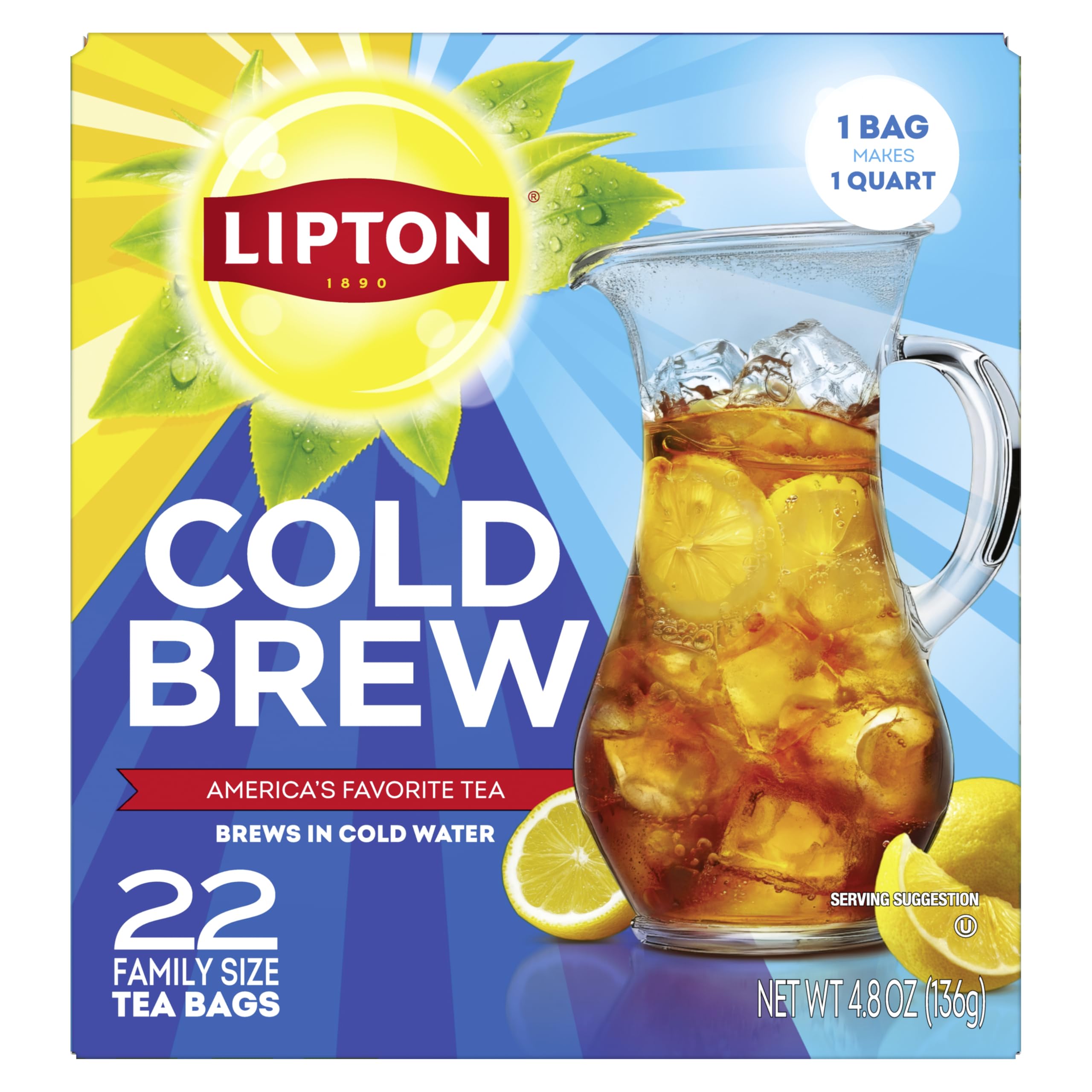 INFUSE YOUR DAY with the smooth, crisp taste of cold brew iced tea with Lipton Cold Brew Black Iced Tea Bags! Perfect for sharing or enjoying alone, this iced tea is the ideal complement to any meal. Crafted with real tea leaves picked at the peak of freshness, each pitcher is full of flavorful goodness without artificial flavors or added sweeteners . Lipton's Cold Brew is Rainforest Alliance Certified, featuring flavorful black tea leaves from Argentina. There’s so much to love about America's Favorite Tea! To make a pitcher, pour 8 cups cool water over 2 tea bags, cold brew for 5 minutes, then add ice and enjoy!