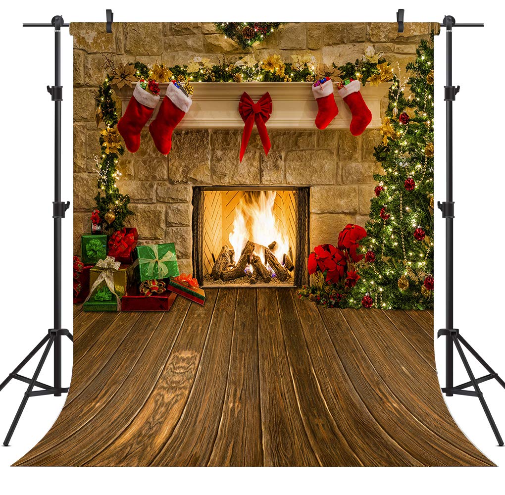 OUYIDA 5X7FT Christmas Fireplace Theme Backdrop for Photography 5X7FT, Clear