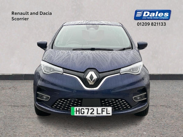 The 2022 Renault ZOE 100kW GT Line + R135 50kWh Rapid Charge 5Dr Auto Hatchback is a stylish electric vehicle in a striking blue colour. With a sleek design featuring 16"" diamond-cut alloy wheels and body-coloured details, this hatchback is not only eco-friendly but also offers a range of modern features.Inside, the Renault ZOE boasts a spacious cabin with high-tech amenities such as a 10"" TFT driver information display, automatic air conditioning, and an Easy Link 9.3"" display with navigation. The interior is completed with luxurious touches like heated front seats, a heated leather steering wheel, and synthetic leather/fabric upholstery made from recycled materials.Safety is a top priority in this vehicle, with features including front and rear parking sensors, lane departure warning system, automatic emergency braking, and ESP traction control. The Renault ZOE also offers convenience features like automatic headlights, rain-sensing wipers, cruise control, and a smartphone integration compatible with Apple CarPlay and Android Auto.Powered by a ZE 50 battery and a R135 motor producing 100kW, the Renault ZOE delivers a smooth and efficient driving experience. It also comes equipped with a Chameleon charger for AC 2-22kW charging, ensuring that you can quickly top up the battery wherever you go.Overall, the Renault ZOE combines eco-friendliness, advanced technology, and a comfortable driving experience, making it an excellent choice for those looking for a modern and sustainable vehicle.