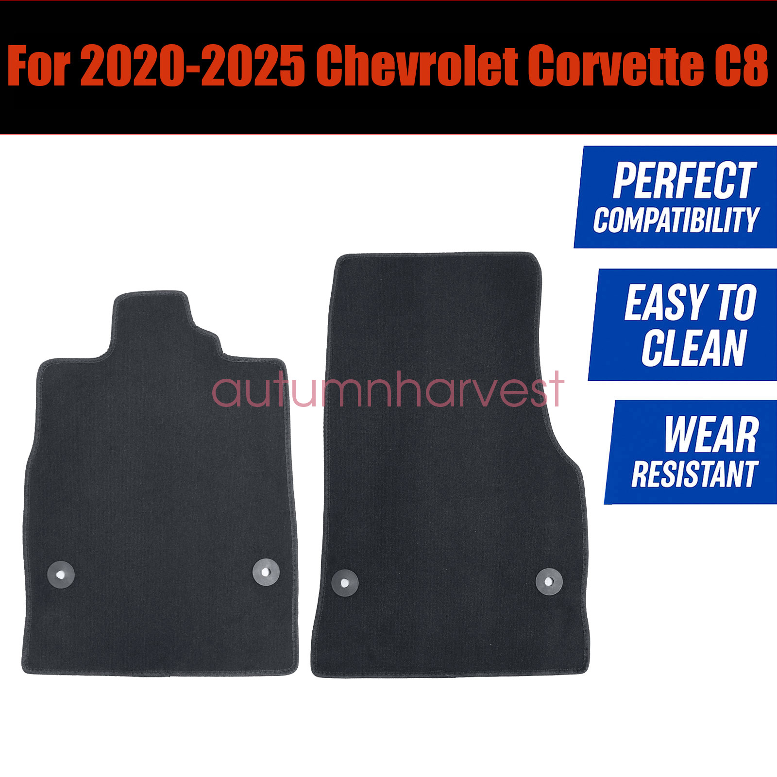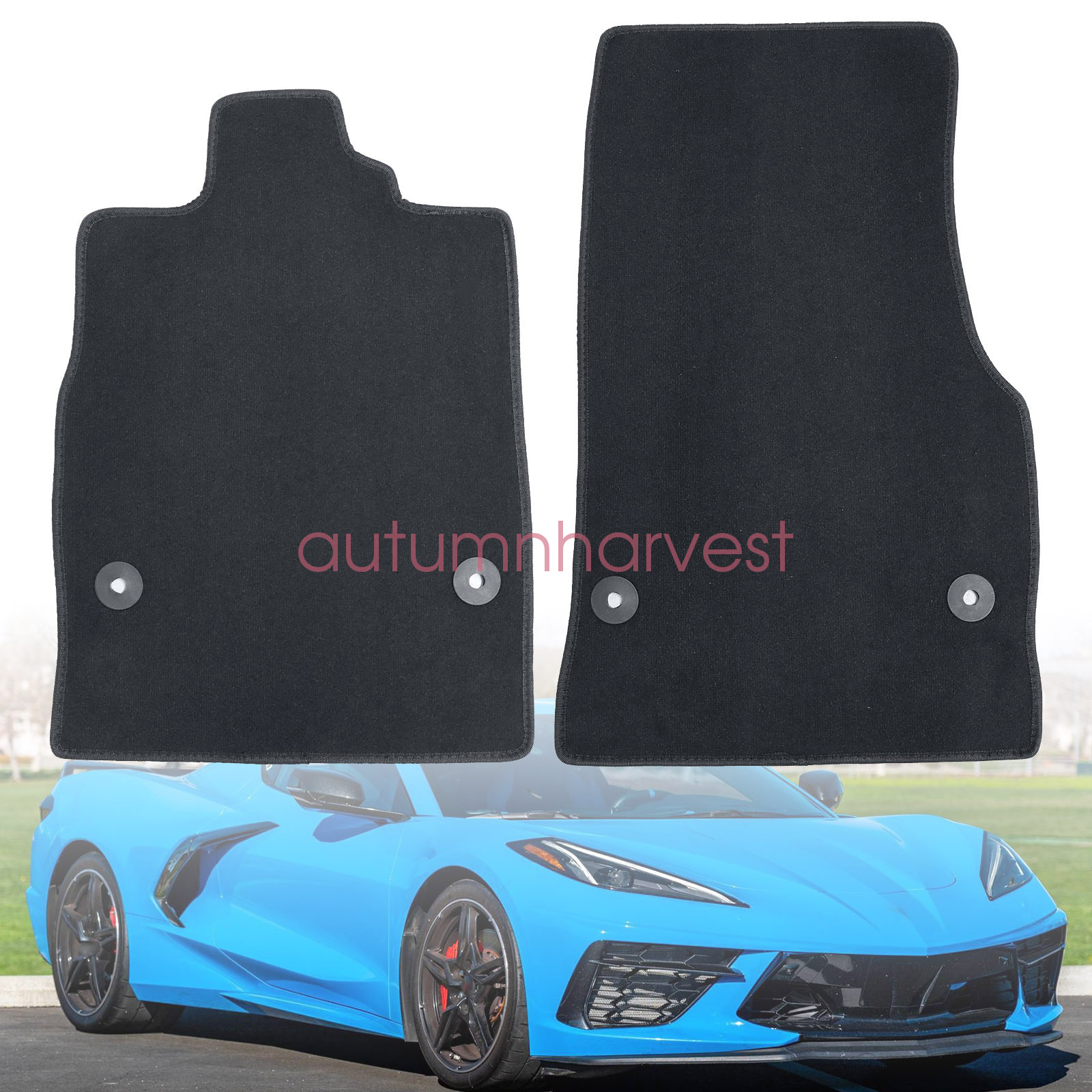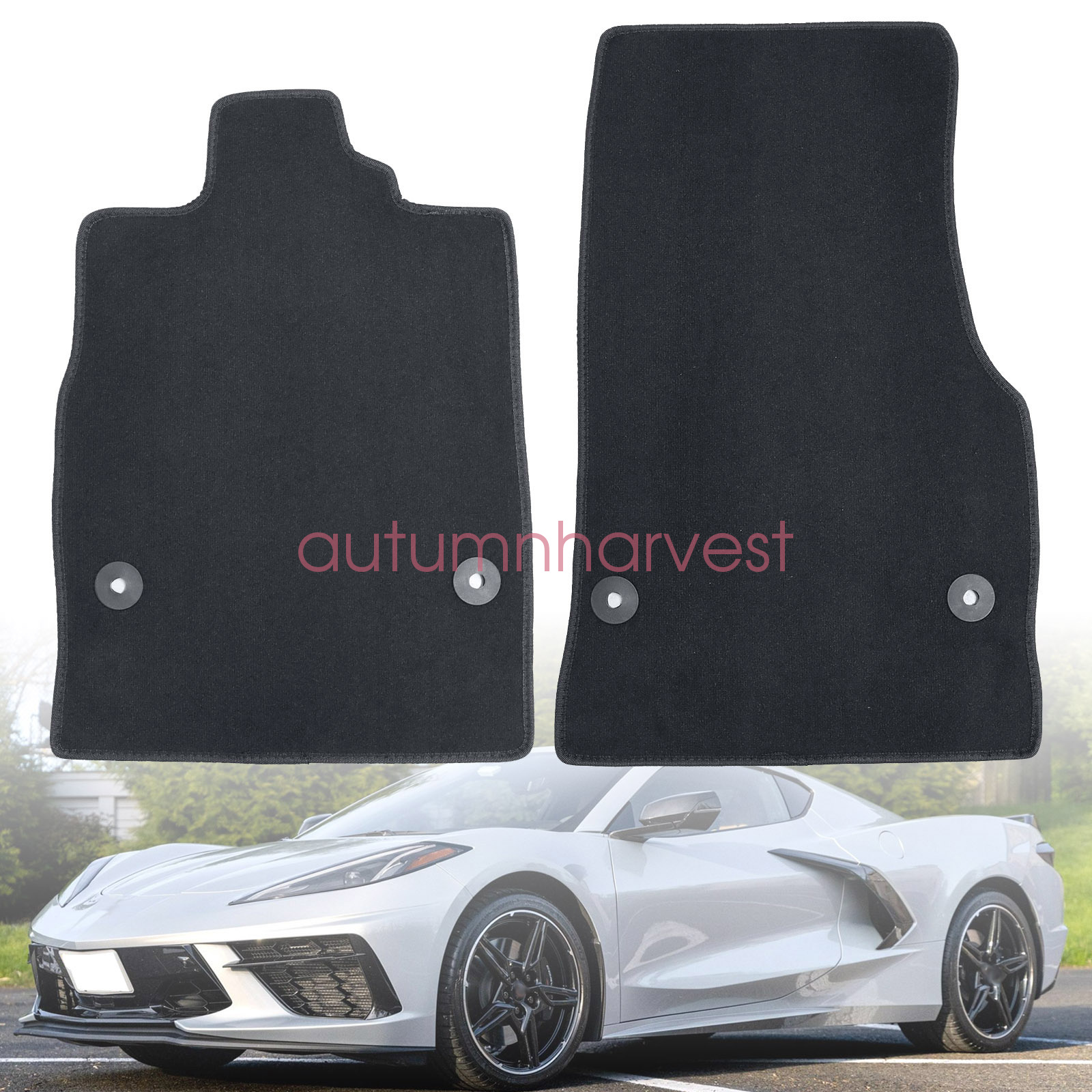 Replacement Black Velour Front Left & Right Floor Mats Carpet Fits 2020 2021 2022 2023 2024 2025 Chevrolet Corvette C8