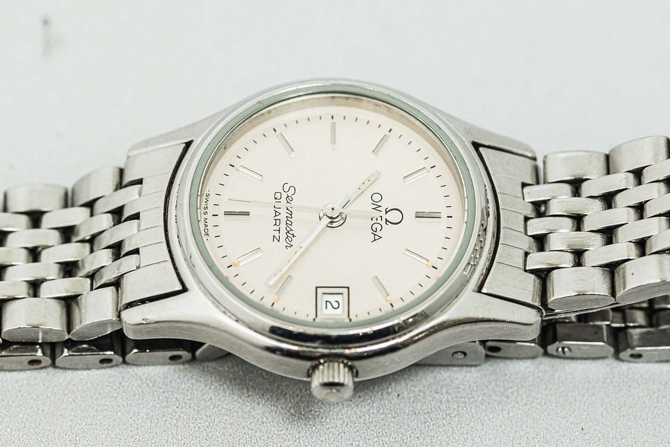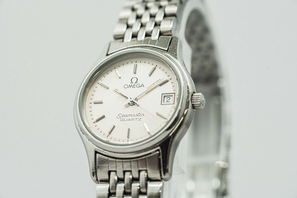 Vintage 1985 *NEAR MINT* OMEGA Seamaster Cal.1380 Quartz Date Silver 23mm Ladies Watch From Japan