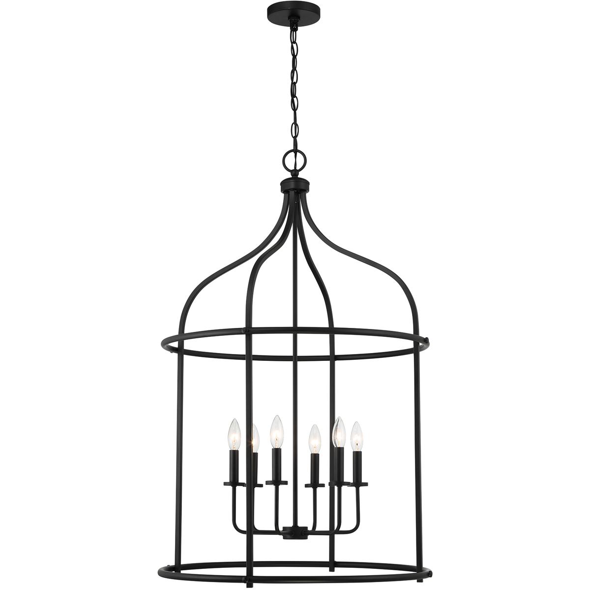 Brighten up boldly with the Savoy House Brookstone 6-light lantern. It has a simply elegant open lantern style and a dramatic Matte Black finish. At 40" in height and 26" in width, it is a great way to illuminate a large room, like a grand foyer. Brookstone uses six candelabra size bulbs of up to 60 watts per bulb. Bulbs not included.